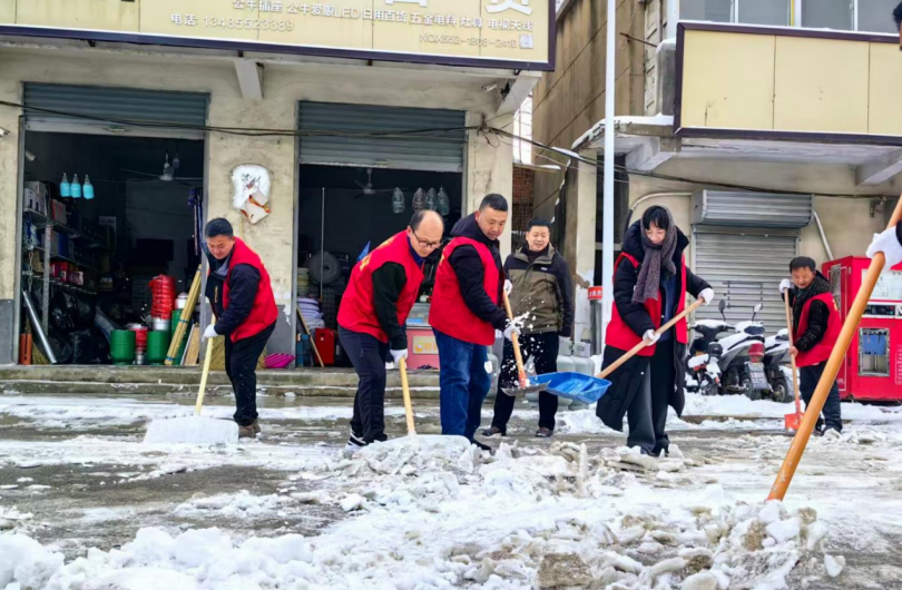 为保障道路通行安全,任桥镇闻雪而动、以雪为令,迅速组织一百余名工作人员与志愿者,奔赴任湖路、中心小学周边、粮站路、344国道等重点路段和人员密集区域,开展全方位清雪除冰作业。大家不畏严寒、分工协作,手持铁锹、扫帚清扫积雪,精准撒布融雪剂,在坡道、路口等易滑路段铺设防滑垫,设立临时警示标志,全力清除通行障碍。同时,组建志愿引导队伍,在交通要道、学校周边开展出行引导与帮扶服务,及时排查消除各类安全隐患,确保行人车辆安全通行,用忙碌的身影在风雪中筑起一道“安全通道”。