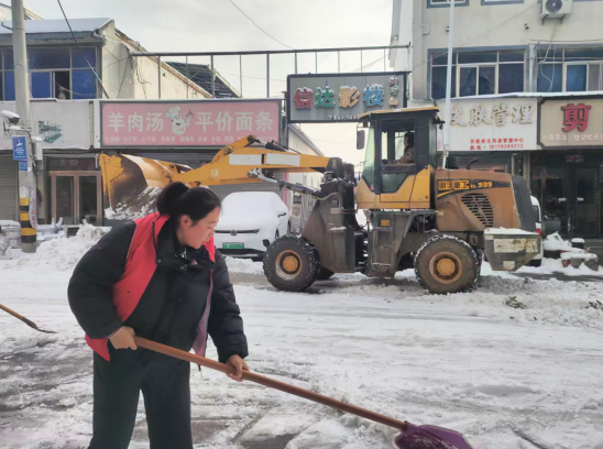 寒风凛冽,党旗飘扬。党员干部与志愿者们奋战冰雪的身影,也带动了社会力量的积极响应。固镇县全胜新型建材有限公司负责人在目睹镇村干部顶风冒雪清理道路后,主动安排厂内一台铲车,义务对厂区门口至主街区的道路积雪进行清理。他的行动,不仅畅通了一段路,更暖了一片心。沿街商户王先生也表示:“门口积雪清理得又快又干净,不仅生意照常,路过的人也安全。真要谢谢镇上这些忙碌的干部和志愿者!”朴素的话语,传递出浓浓的暖意与信任。