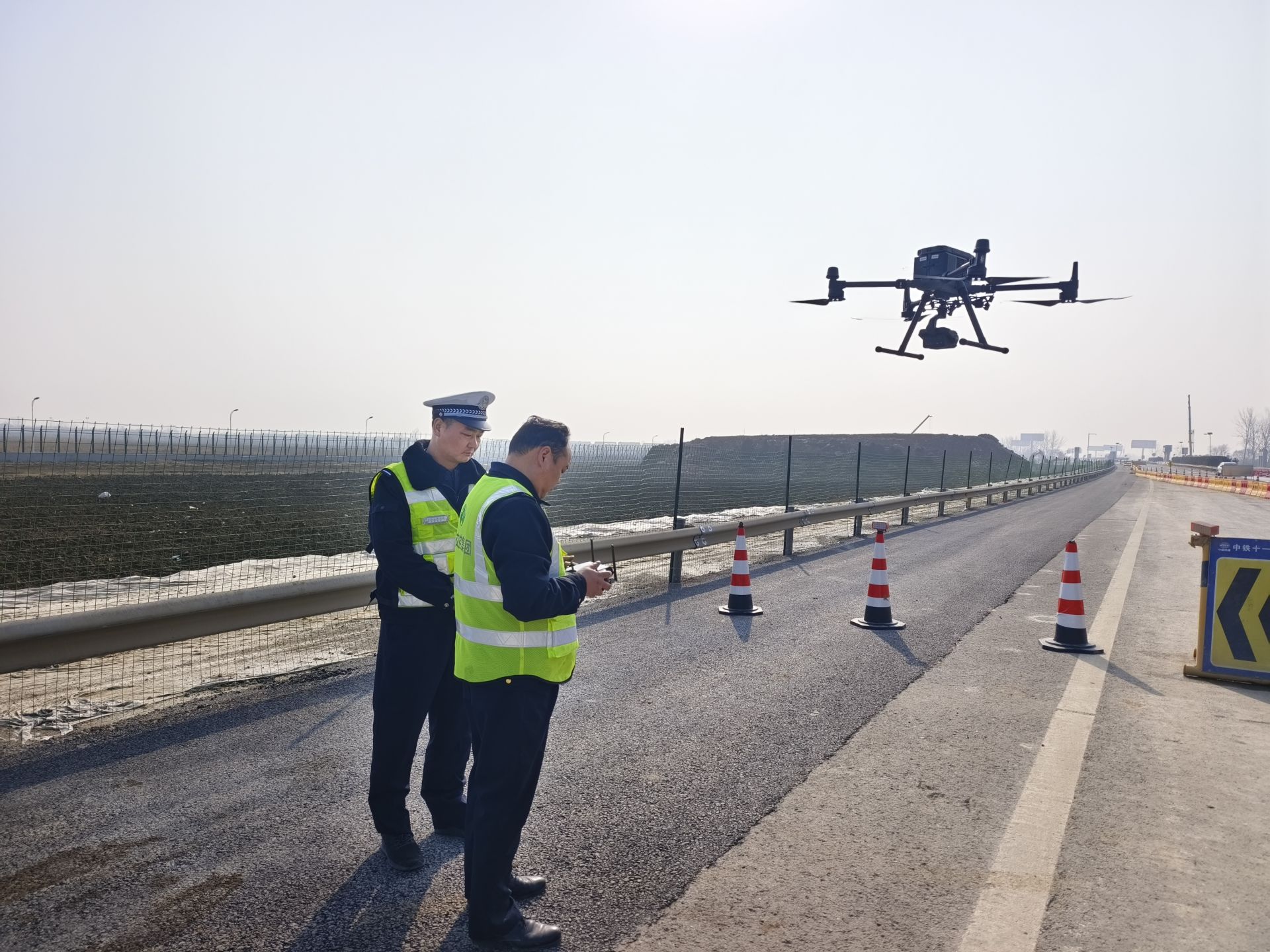 蚌埠西管理分中心联合辖段“一路三方”,启用无人机进行路况巡查,精准保障改扩建路段通行安全。