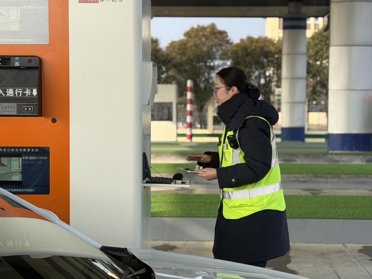 王庄站工作人员为返乡车主现场激活ETC,提供便捷高效的“皖美”服务。