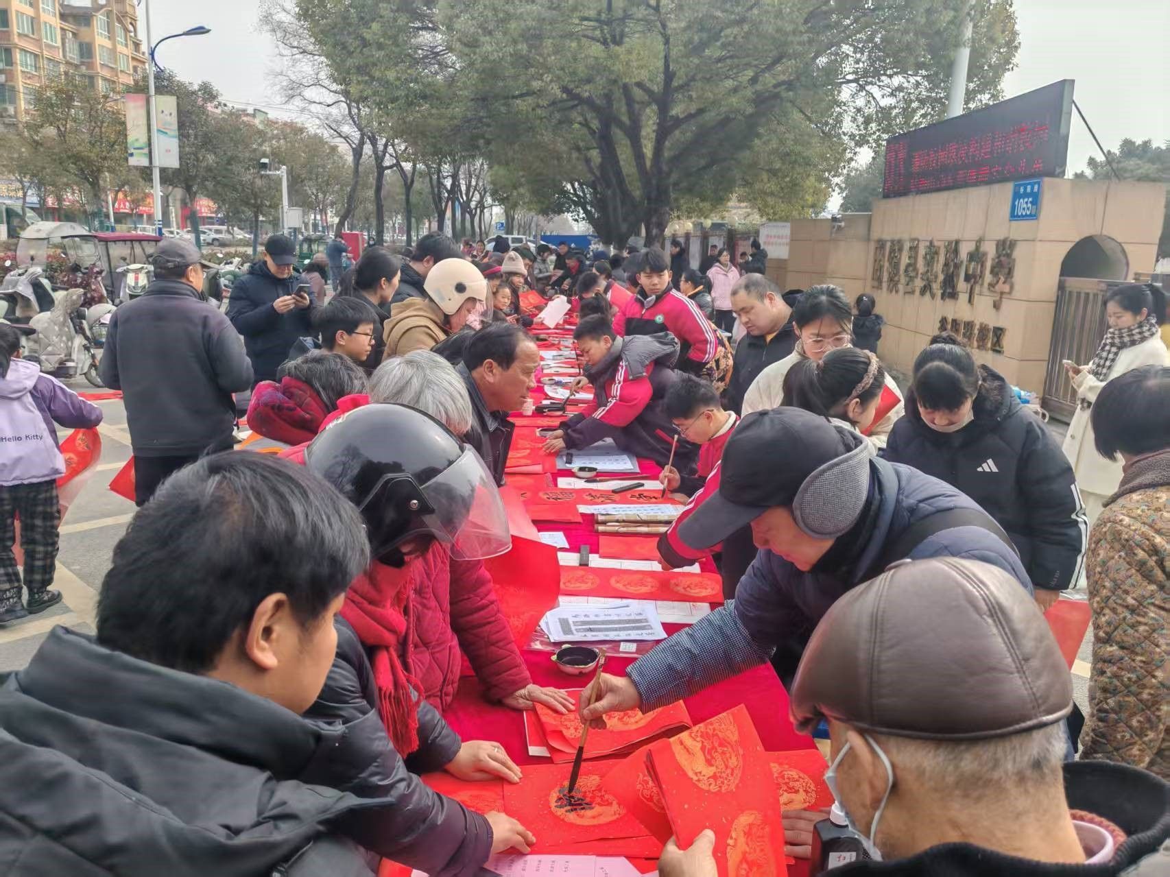 来自固镇县实验初级中学的20余名师生挥毫泼墨,以笔墨寄情,以春联达意。一上午时间,师生们现场书写了700余副满载祝福的春联,将浓浓的年味与真挚的敬意融于红纸黑字之间。