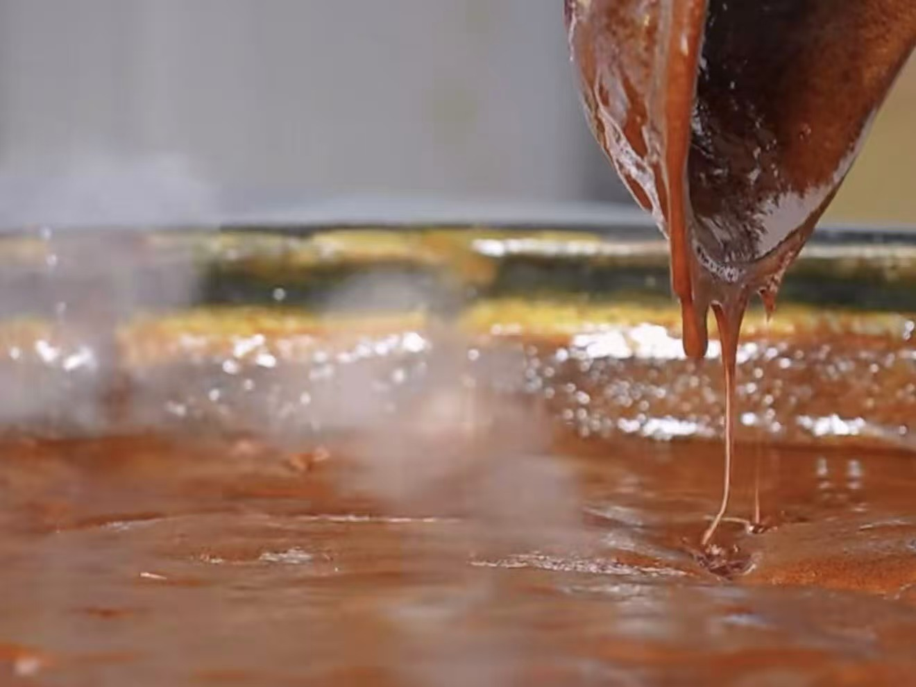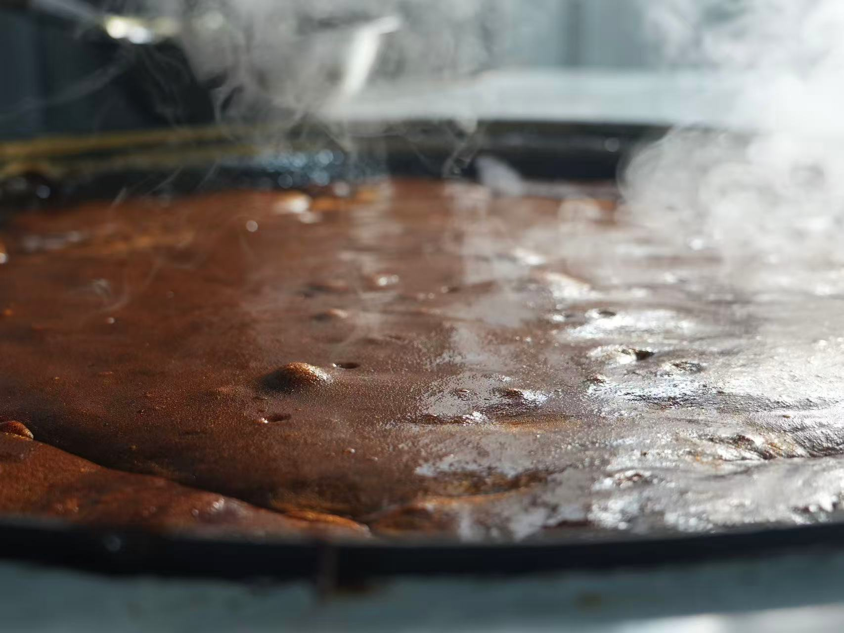 熬煮完成后的糖稀已达到出糖块和展糖的作用。