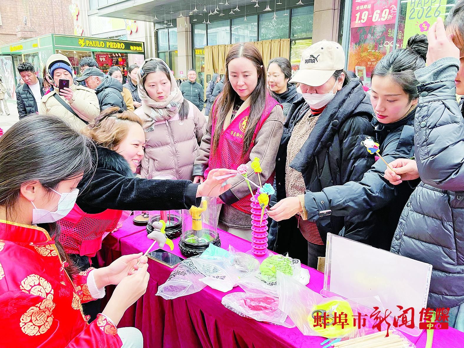 2月28日,蚌山区天桥街道华昌街社区举办第八届“非遗”进社区闹元宵活动。居民们聚在一起猜灯谜,看资深传承人以勺为笔、以糖为墨绘制生肖糖画,巧手捏制百态面人,近距离感受传统技艺的魅力,在欢声笑语中弘扬传统文化,共度元宵佳节。(洪吉庆 高梦丽)