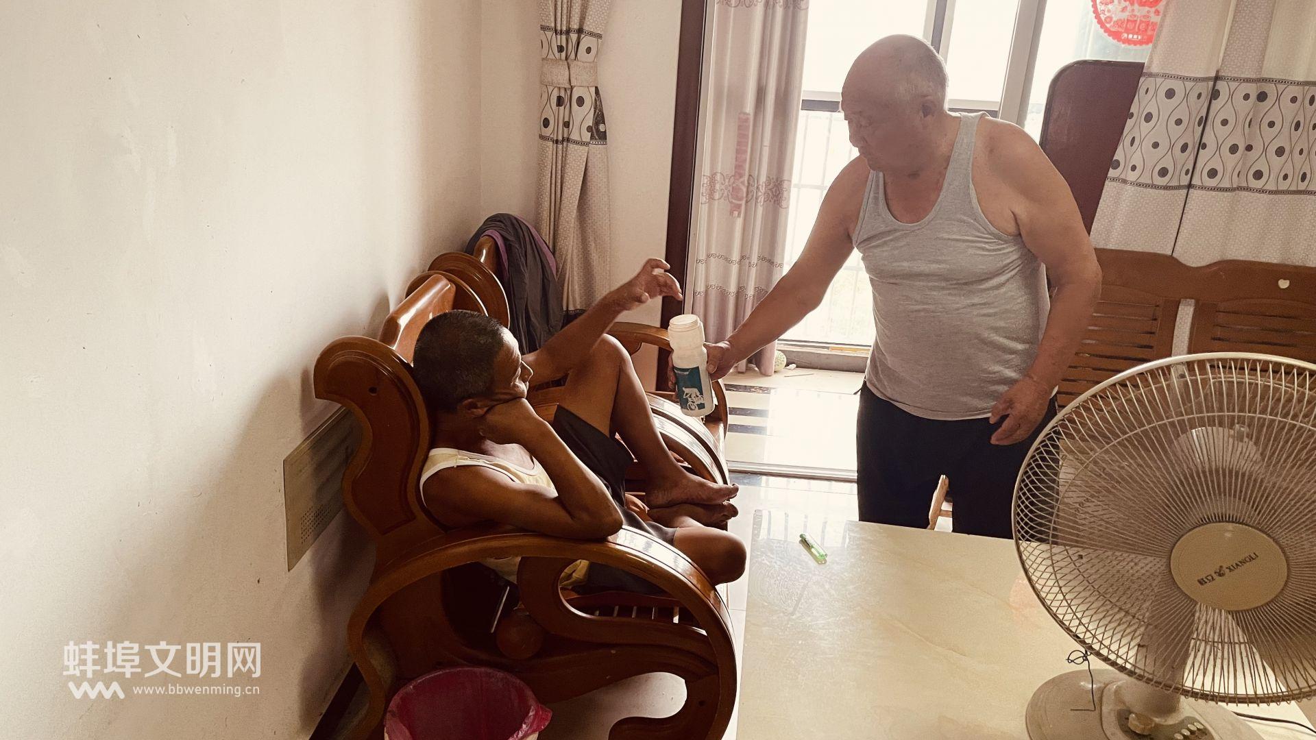 陈付尧,五河县城关镇文昌社区人,75岁的他两鬓白发。虽自身患有高血压等疾病,却依然坚持每天照顾智力残疾的儿子。“他爱出去跑,跑丢了就得跟后面找。”陈付尧说。