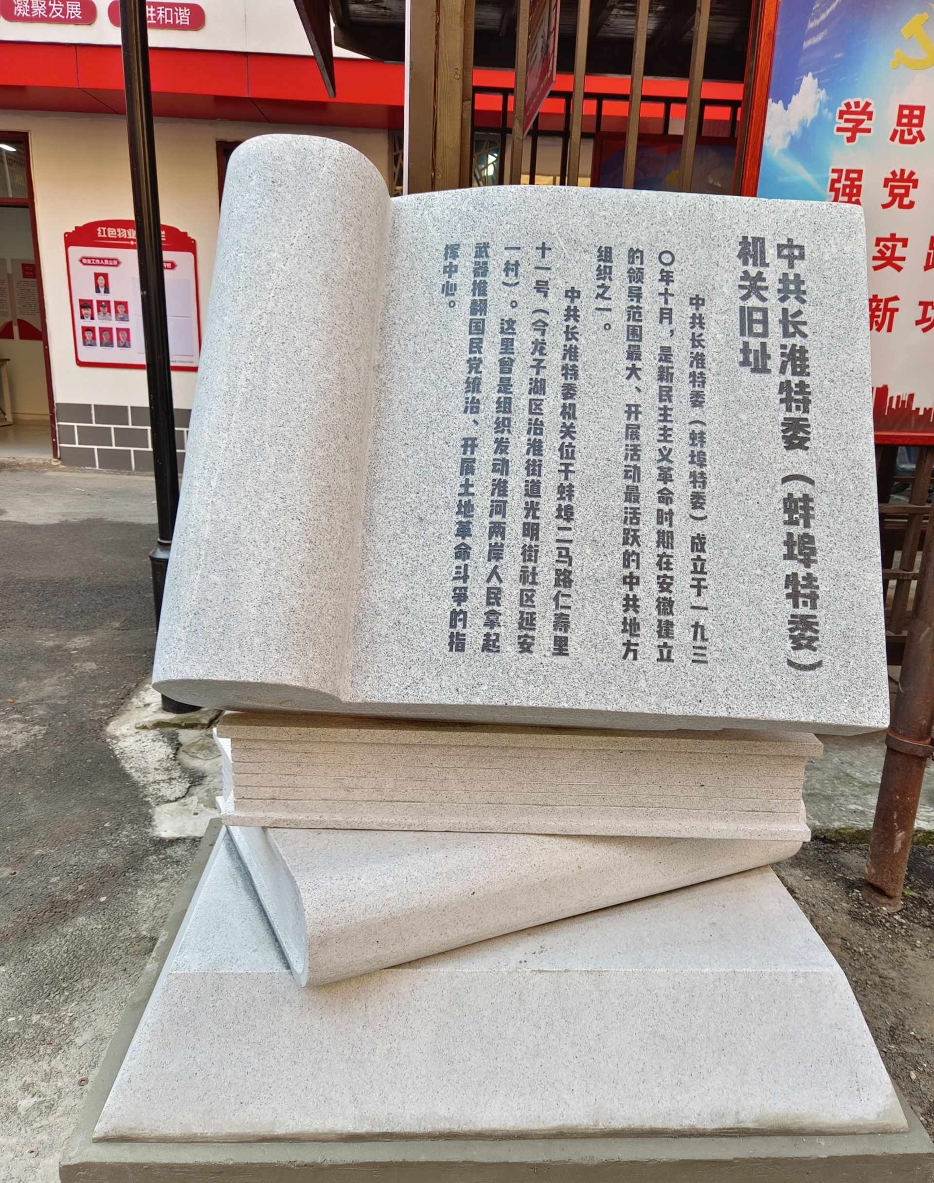 90多年前,为支援苏皖红军反“围剿”斗争、进一步加强军事重镇蚌埠及其周边地区的工作,1930年10月,中共江南省委决定,成立中共长淮特委,特委机关就秘密设在居民区中。在中共长淮特委(蚌埠特委)机关旧址的石碑上十分清晰地刻着:长淮特委成立于1930年10月,是新民主主义革命时期安徽建立的领导范围最大、开展活动最活跃的中共地方党组织之一。中共长淮特委(蚌埠特委)机关位于蚌埠二马路仁寿里11号,今光明街社区延安一村。这里曾是组织发动淮河两岸人民拿起武器推翻国民党统治、开展土地革命斗争的指挥中心。