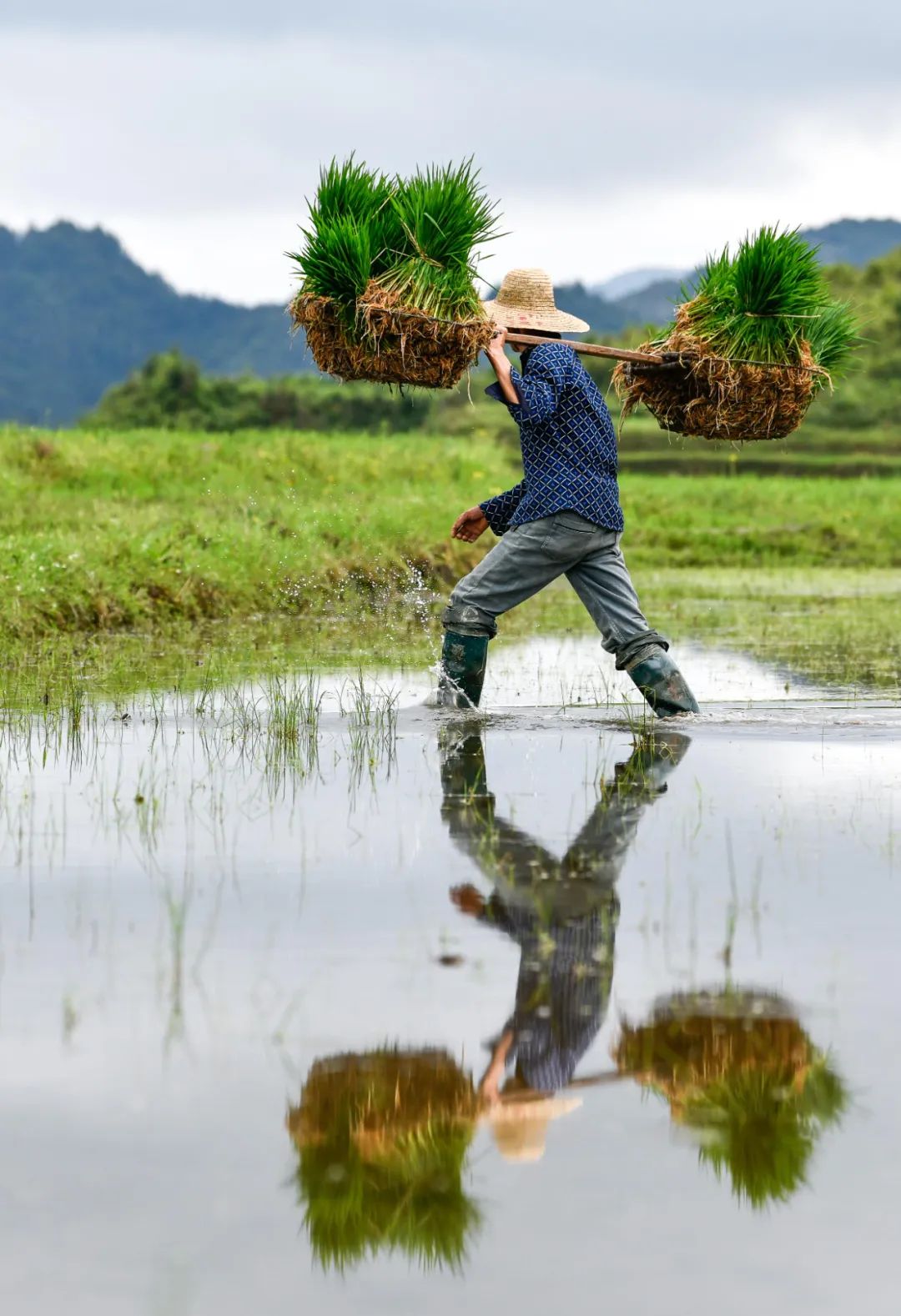 边插秧边打闹