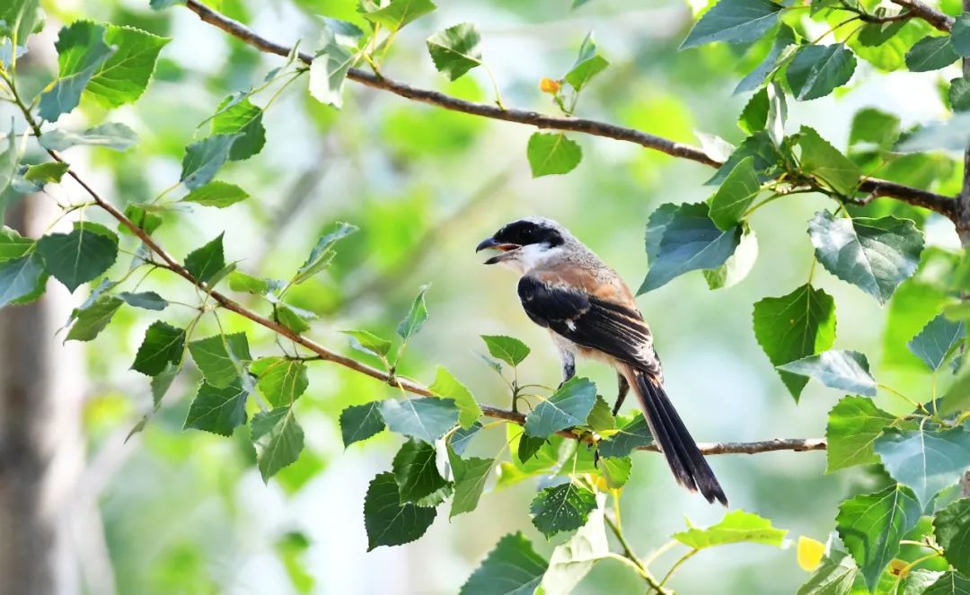 伯劳鸟开始在枝头鸣叫