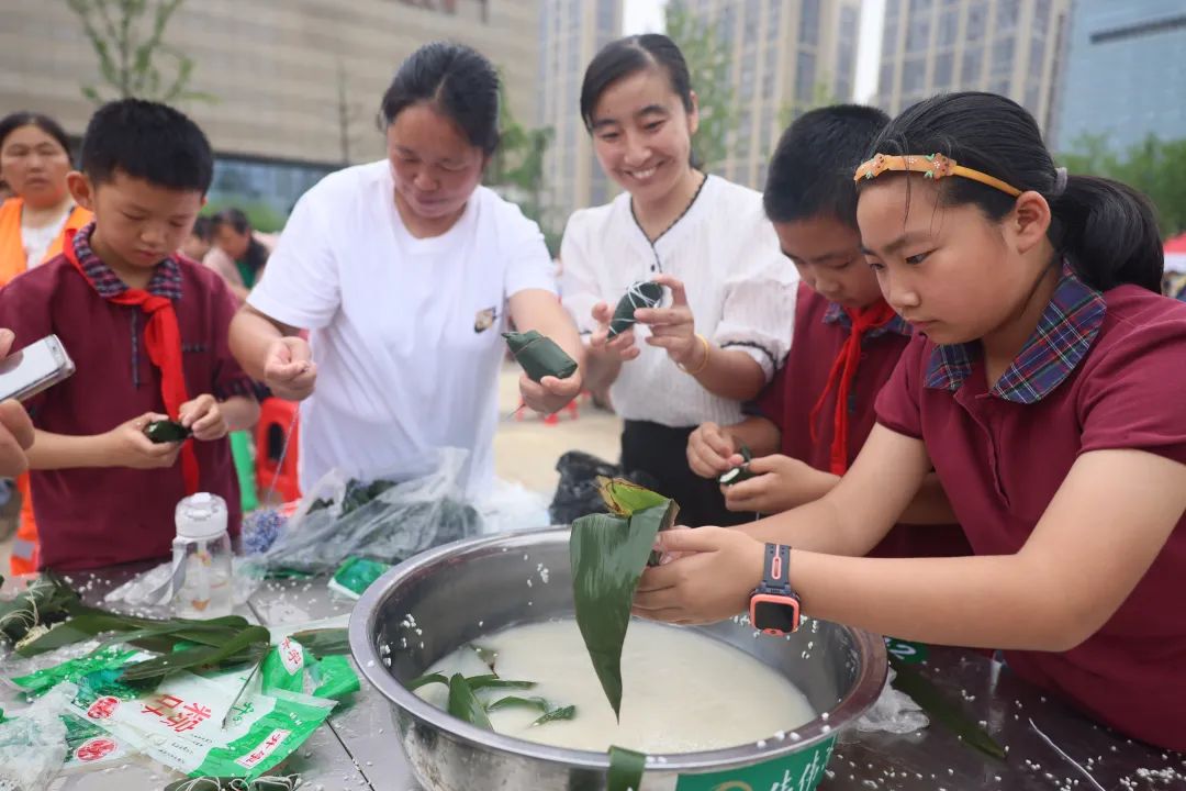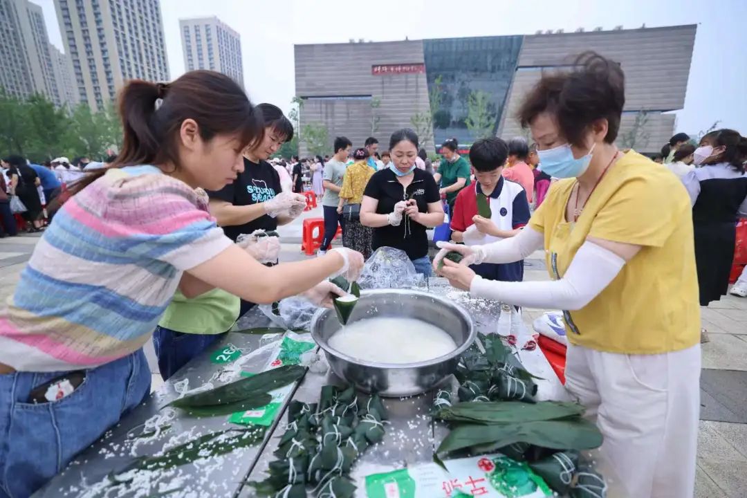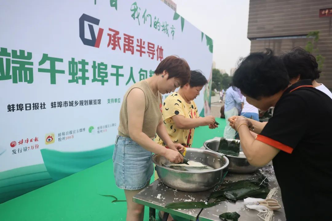 蚌埠文明网讯 (融媒体记者 谢勋章/文 刘晨 陈昂/图) “仙女”临凡,“涂山氏”驾到。6月17日9:00,市民广场其乐融融、热闹非凡。由市委统战部、蚌埠日报社、蚌埠市城乡规划展览馆联合主办,“我们的节日 我们的城市”承禹半导体—2023年首届端午千人包粽子暨爱心捐赠活动,在这里成功举办。蚌埠市新城滨湖学校、蚌山区城市管理局对本次活动的大力支持。伟伟冰酒酿、超群饼屋、老石家百草梨膏糖、蚌埠市中医院为本次活动提供赞助。