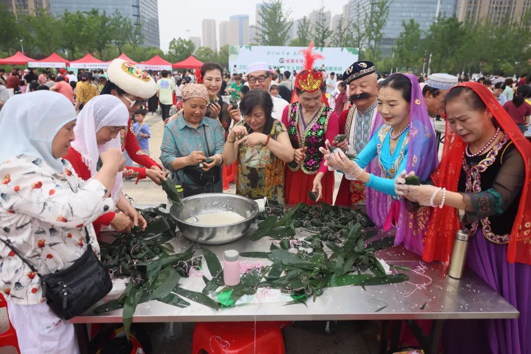 当天,少数民族同胞们穿着各民族的特色服装,盛装出席,49号桌成为现场一道亮丽的风景线,镁光频闪。回族同胞李子萍介绍,每年端午,他们都会包豆沙和蜜枣口味的粽子,这些年青麦制作的麦仁粽子已逐渐流行。根根丝线连,切切情意牵。活动开始后,李子萍等人包粽子、捆粽子,熟稔而麻利。李子萍说,等活动结束后,她会将今天包好的粽子送给亲朋好友,将感受到快乐和浓浓同胞情分享给大家。