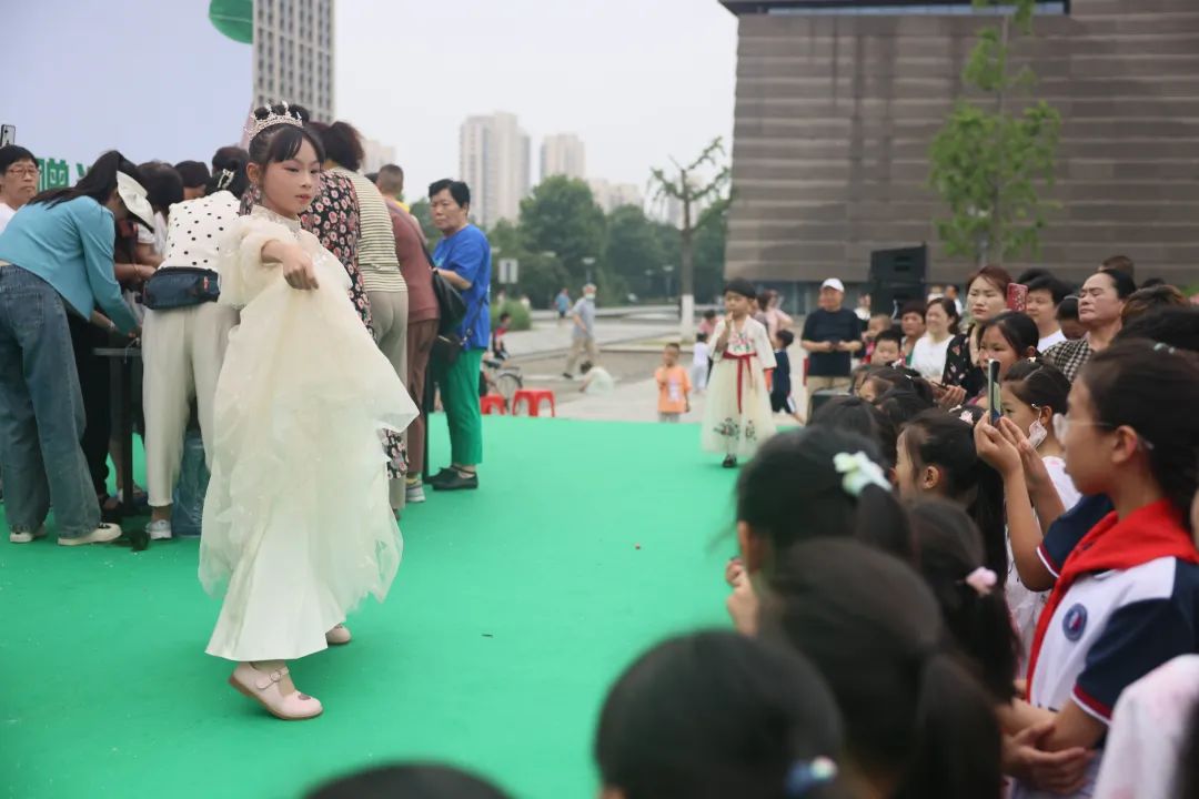 在包粽子比赛的同时,来自新城滨湖学校的小记者们为本次活动准备了一台精彩的文艺演出,跳舞、唱歌、舞蹈,小朋友围成一圈,看得起劲。台上激战正酣,大家直呼眼睛已经看不过来。