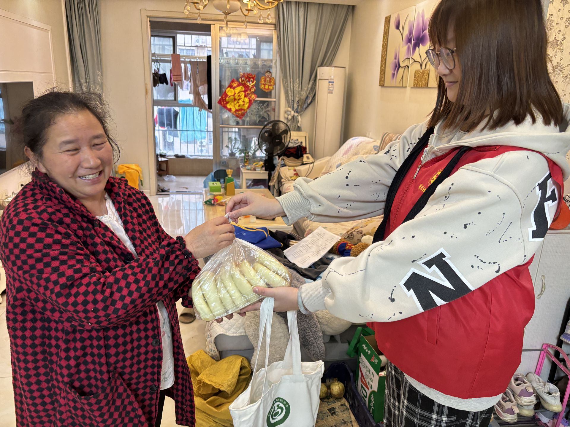 随后,社区志愿者走访慰问老党员、困难群众以及新就业群体,在慰问中,志愿者把糖饼和生活用品等慰问品送到他们的手中,为他们送上节日的祝福,让他们在这个团圆佳节感受到党组织的关爱。