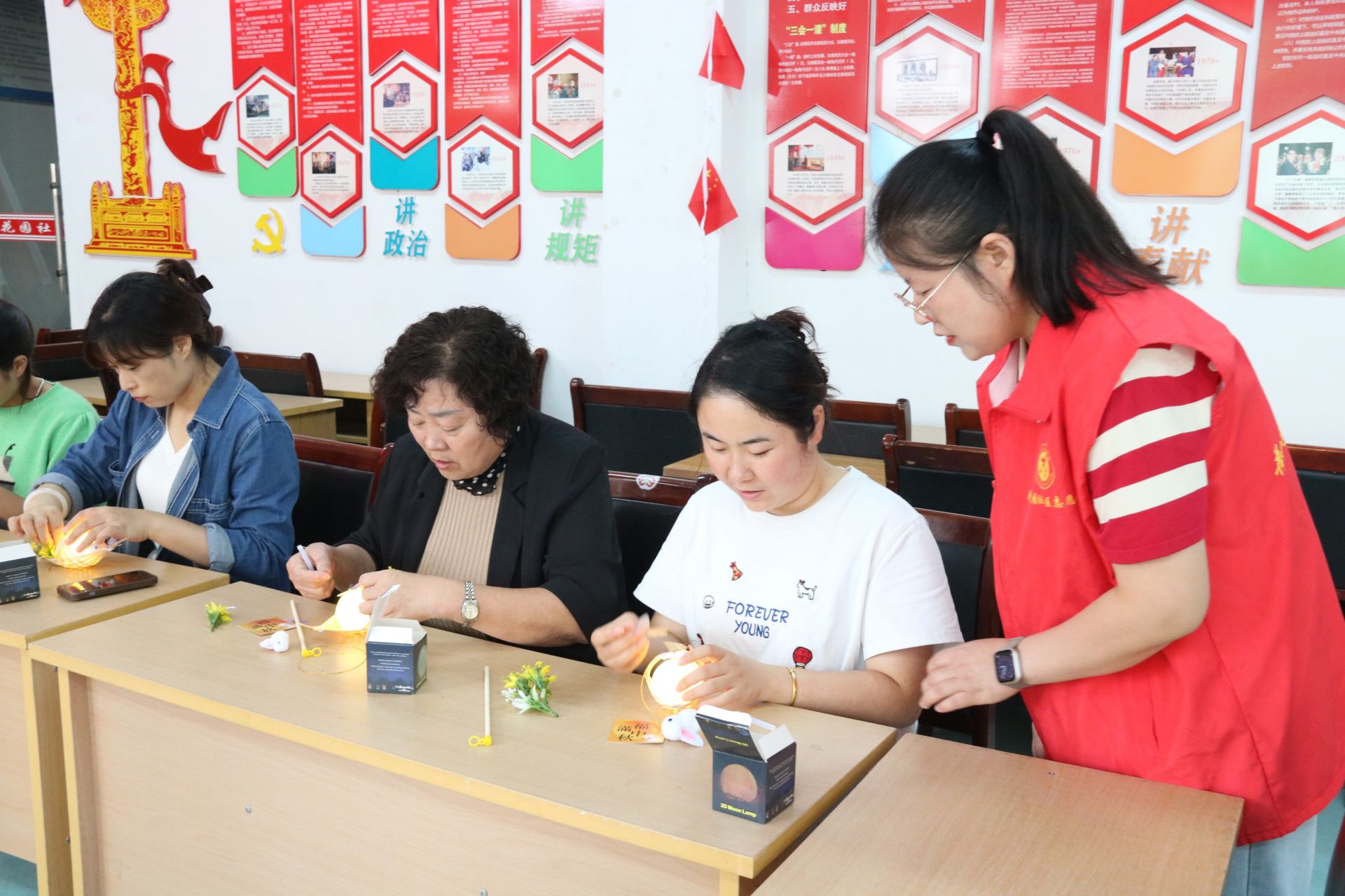 灯笼是我国传统文化的典型元素之一,也是逢年过节喜庆吉祥的象征。活动现场,社区准备了制作花灯的材料,志愿者为大家详细讲解了制作手工花灯的步骤。在欢声笑语中,大家按照制作步骤去串、贴、缠,不大功夫,这些材料经过大家巧手制作、装饰,很快变成了一盏盏精致的玉兔花灯,活灵活现。