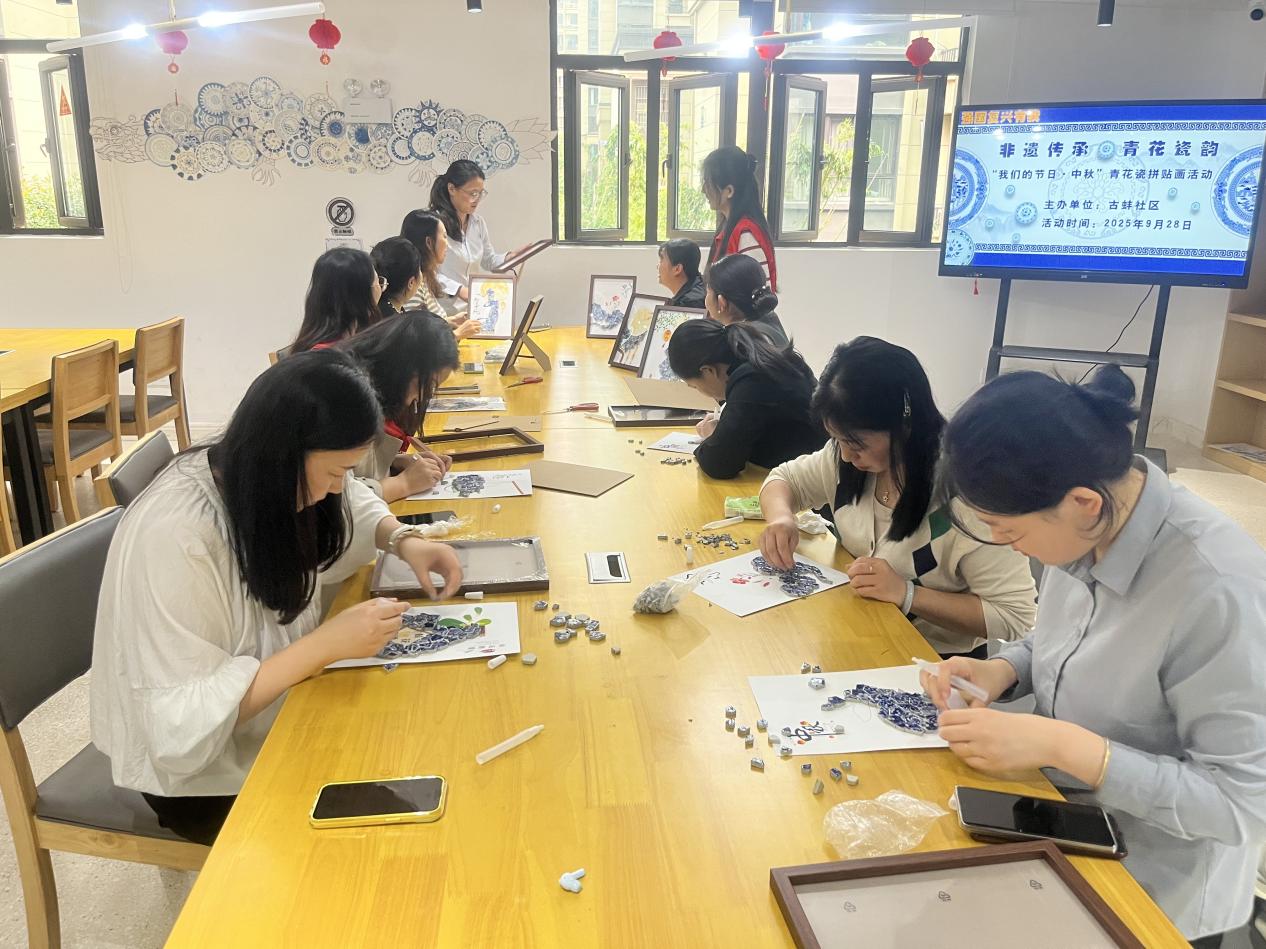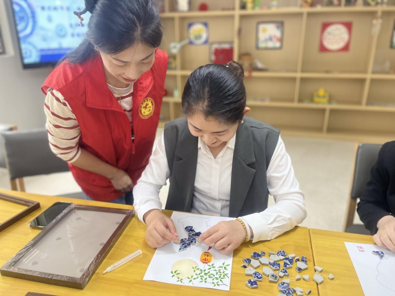 “以前觉得青花瓷很高冷,只能在博物馆里看到。今天自己动手拼贴,才发现它的纹样这么美,内涵这么丰富,这个中秋节过得特别有意义!”一位参与活动的居民捧着自己的作品欣喜地分享道。