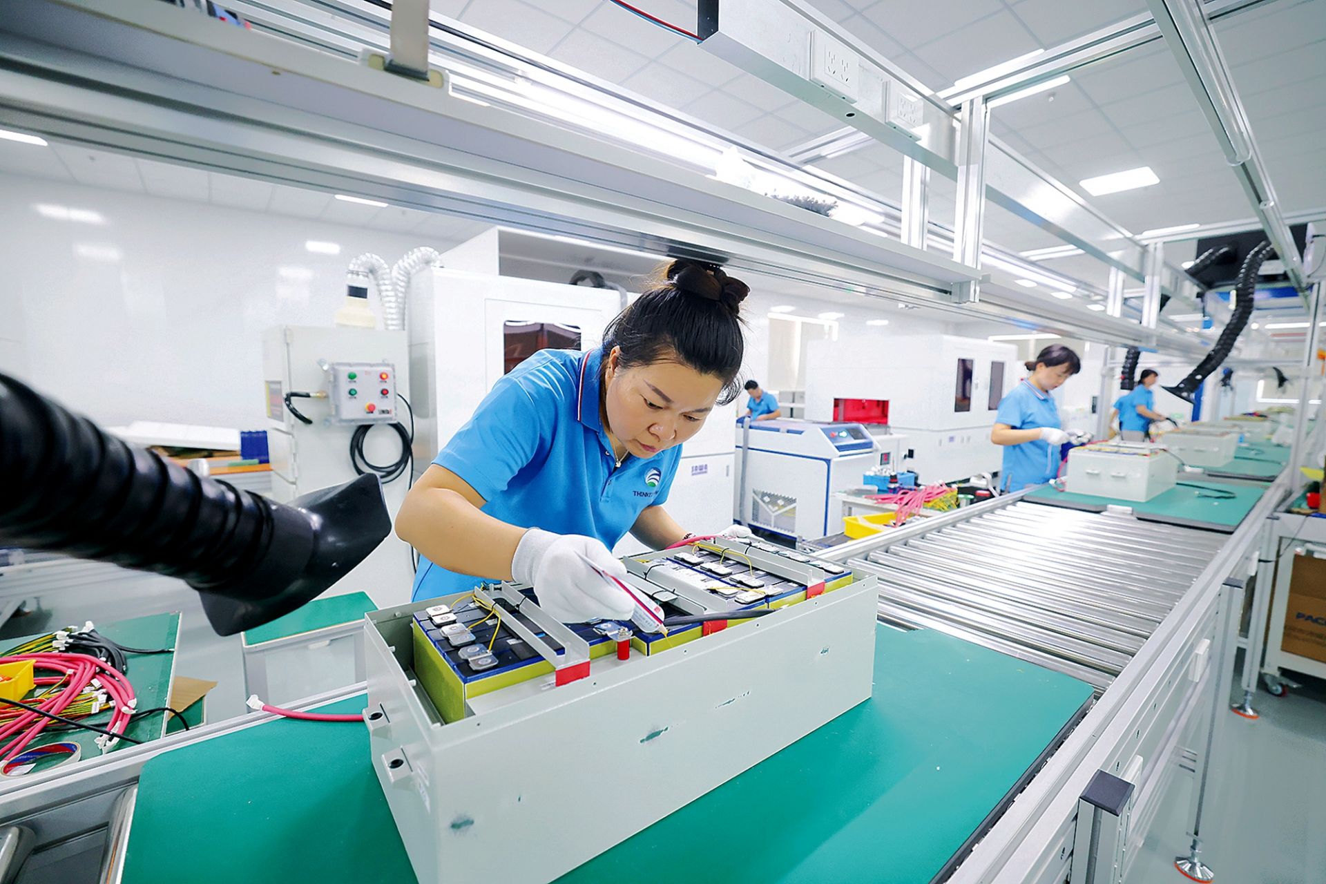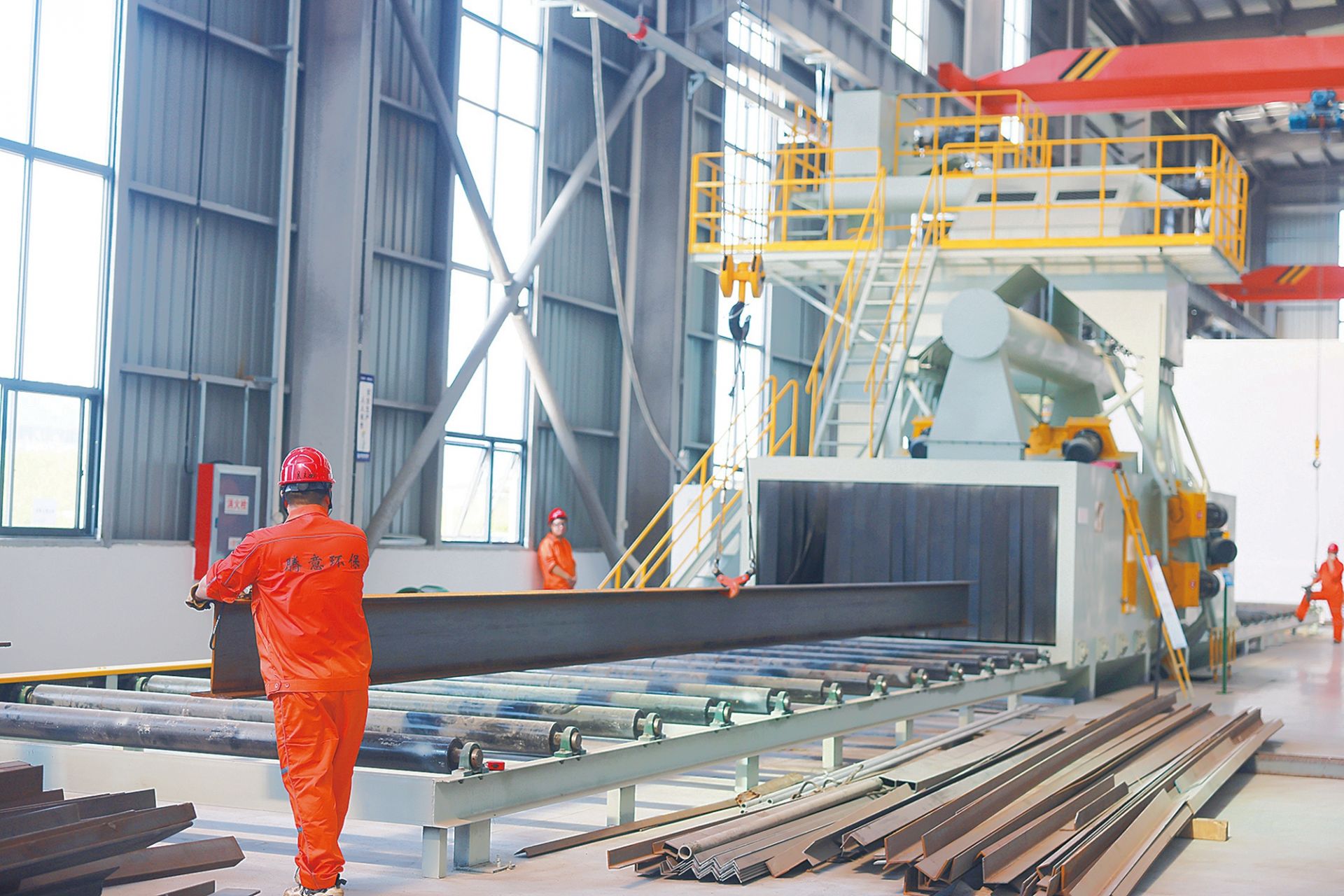 腾意新型环保装备生产基地项目现场,员工赶制订单产品。