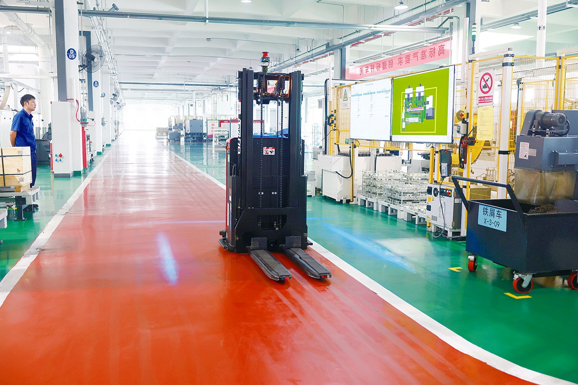液力机械5G智能工厂数字化转型示范项目现场,AGV智能物流小车按照生产程序工作。