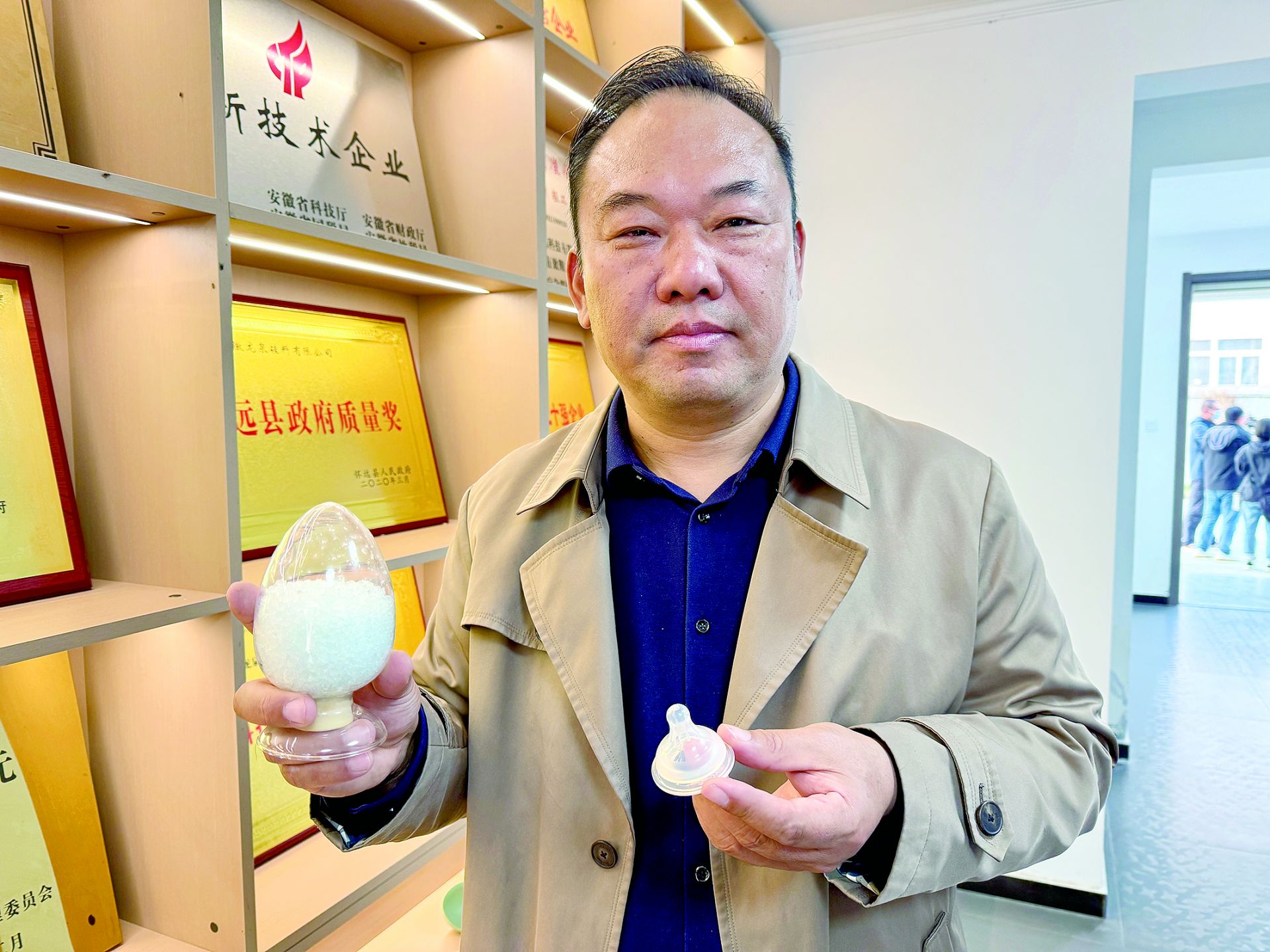 “别小看这‘玻璃块’,它的学名叫超纯硅酸钠,是高端橡胶的‘核心基石’,婴儿奶嘴、新能源汽车密封件、海底通讯电缆里,都离不开它。”安徽龙泉硅材料有限公司总经理赵东旭手持产品向记者介绍,“以前这种高端原料得靠进口,现在我们自己做的,杂质比国外的还少,连芯片领域都在用。”