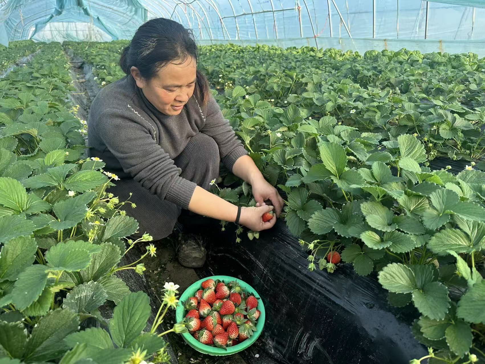 “主要通过零售、批发和入园采摘三种方式销售。每天早上进行集中采收,批发给固定客户,现在草莓刚上市,市场收购价约在每斤24元左右。”说起销售情况,李贵芹信心满满。据了解,泗河湾草莓园占地约4亩,建有4座标准化大棚,全部种植市场青睐的红颜草莓,通过学习并引进新型栽培技术,引入蜜蜂进行自然授粉,在提升草莓口感的同时,也确保了产品的纯天然与高品质,采收期可持续至2026年4月。