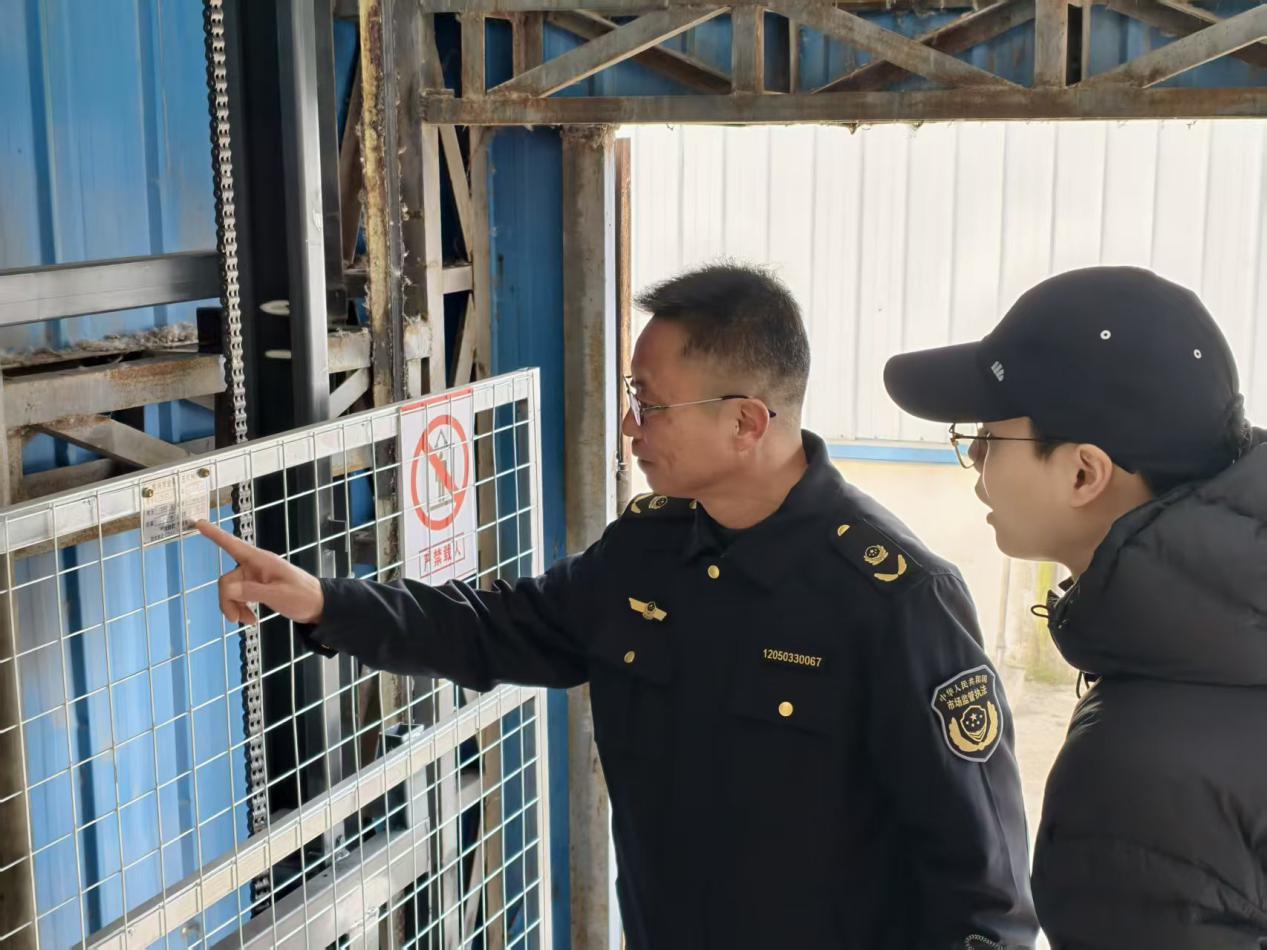 联合检查组以商超、医院、住宅小区、燃气充装站、园区企业等公众聚集场所为重点检查区域,着重聚焦电梯、起重机械、叉车、气瓶等关键特种设备。执法人员通过查阅设备注册登记档案、日常维护保养记录、应急处置预案,结合现场实地核查与仪器精准检测相结合的方式,对特种设备运行状况、安全保护装置有效性、电梯维保质量等进行全面细致的安全“体检”。同时,实施“地毯式”排查,重点核查设备定期检验情况、作业人员持证上岗资质,检测安全附件运行有效性,深入排查各类安全风险隐患,并督促使用单位严格落实防寒防冻措施及日常维护管理制度。