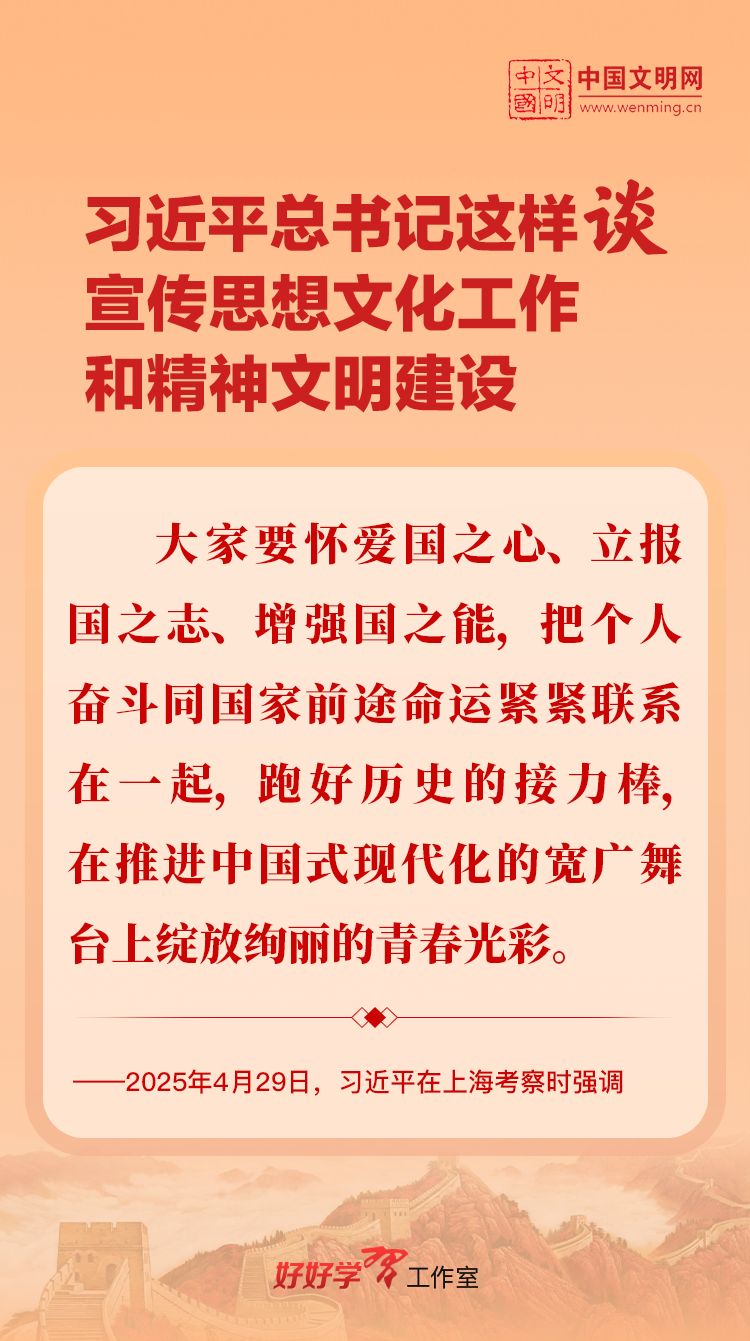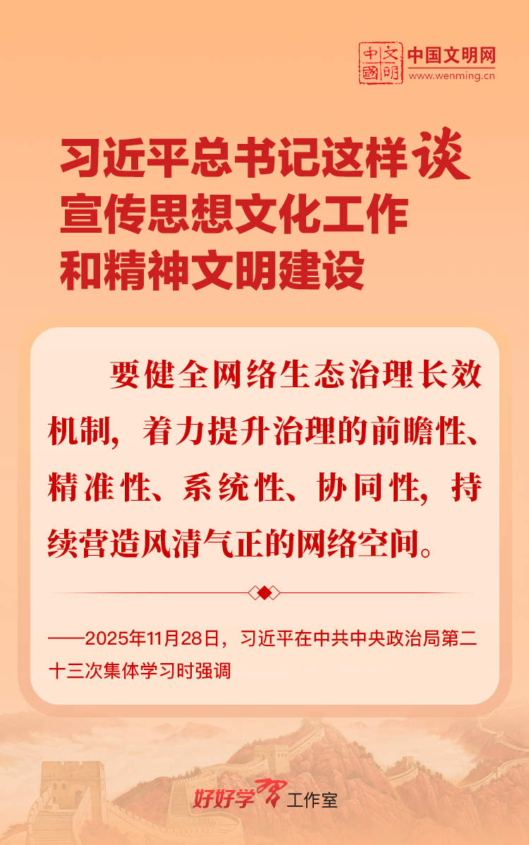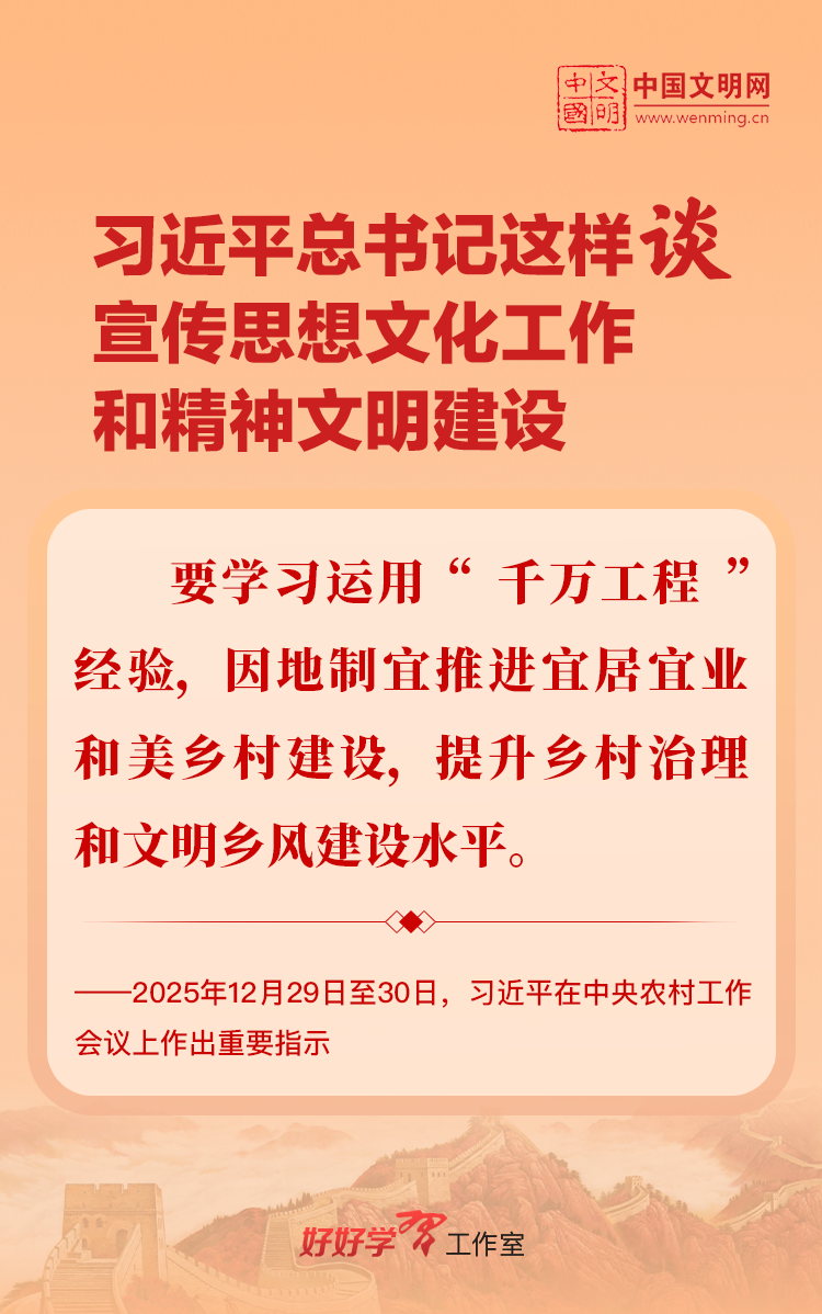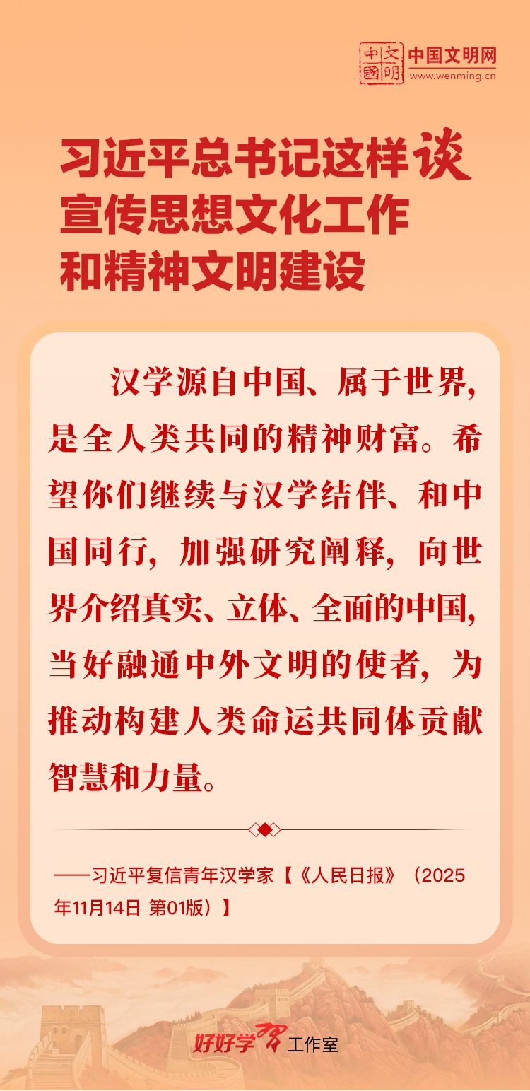 习近平总书记高度重视宣传思想文化工作和精神文明建设,念兹在兹、饱含期许。2025年,习近平总书记对宣传思想文化工作和精神文明建设作出一系列新的重要指示,发表一系列重要论述。本网从这一年的头条报道中辑录部分内容,让我们一起深入学习领会,更加自觉学习贯彻习近平文化思想,更好担负起新时代的文化使命。