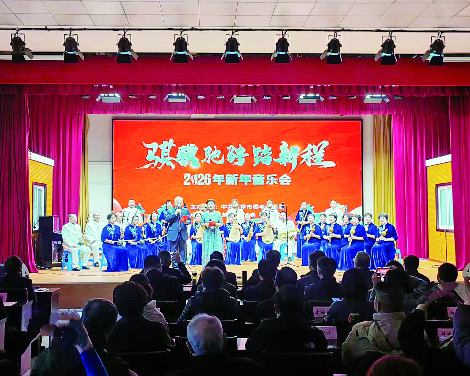 旋律悠扬颂时代,银龄风采映初心。2025年12月30日,蚌埠市委老干部局“骐骥驰骋踏新程”2026新年音乐会在市老干部活动中心多功能厅举行。部分市级老同志、市直单位及高校老年大学负责人、离退休干部先进代表等200余人齐聚一堂,共赏艺术盛宴,共迎新年到来。