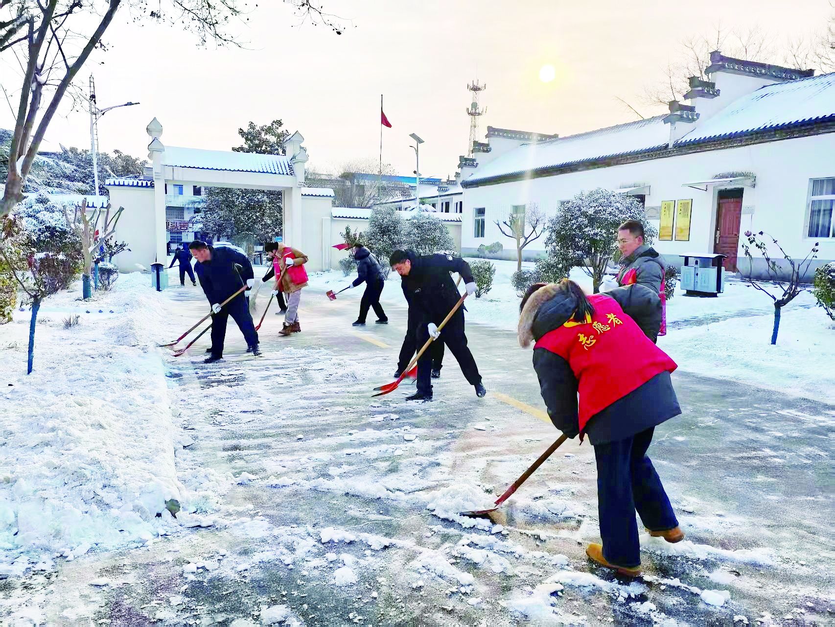 更令人动容的是那些温情细节:怀远县常坟镇的志愿者们踩着泥泞,为孤寡老人清理门前积雪;经开区长淮卫镇司马村志愿服务队清扫道路积雪,并帮助过往车辆通行;固镇县任桥镇铁路地下道前,志愿者们不仅清除积雪,还进行了防滑处理。