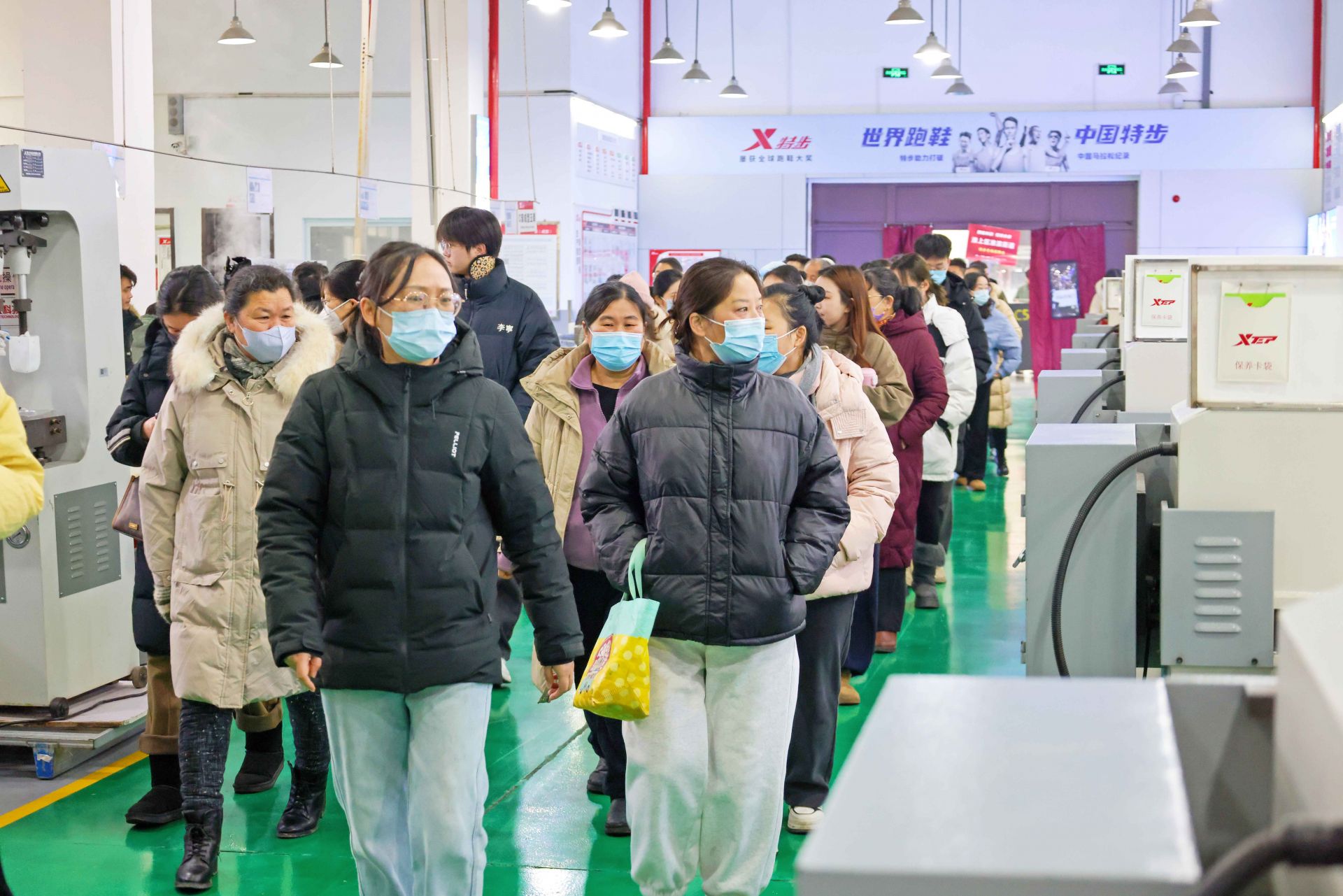 1月27日,21辆专用大巴车载着蚌埠市千余名求职者,探访生产一线,精准对接企业用工需求,开启“沉浸式”招聘新体验。当天上午,蚌埠市淮上区政府与特步(安徽)有限公司联合主办的“智能制造,职引未来”特步专场大型招聘会举办。求职者走进特步(安徽)有限公司,近距离观摩智能制造生产线的高效运转,感受工作环境与企业文化。