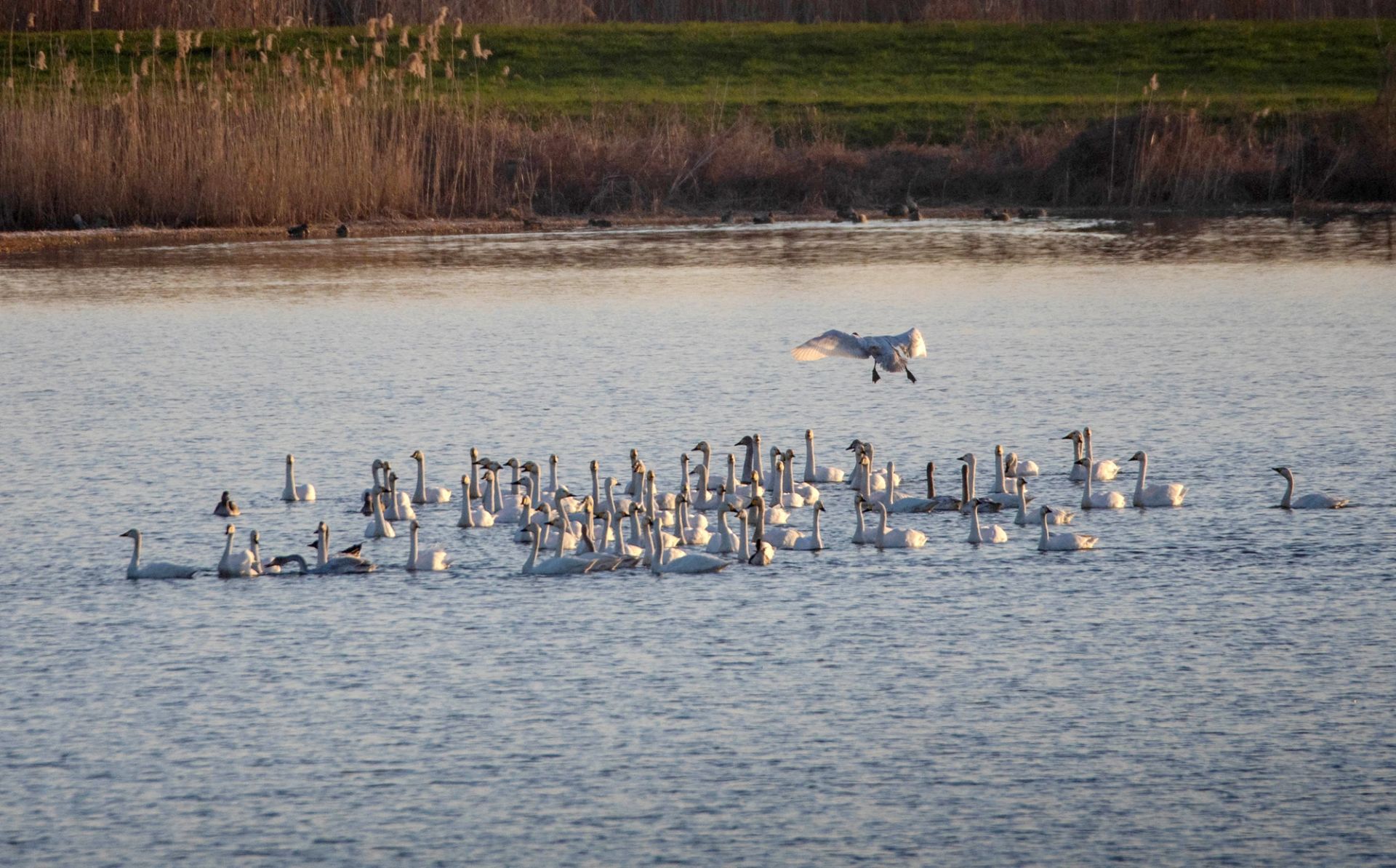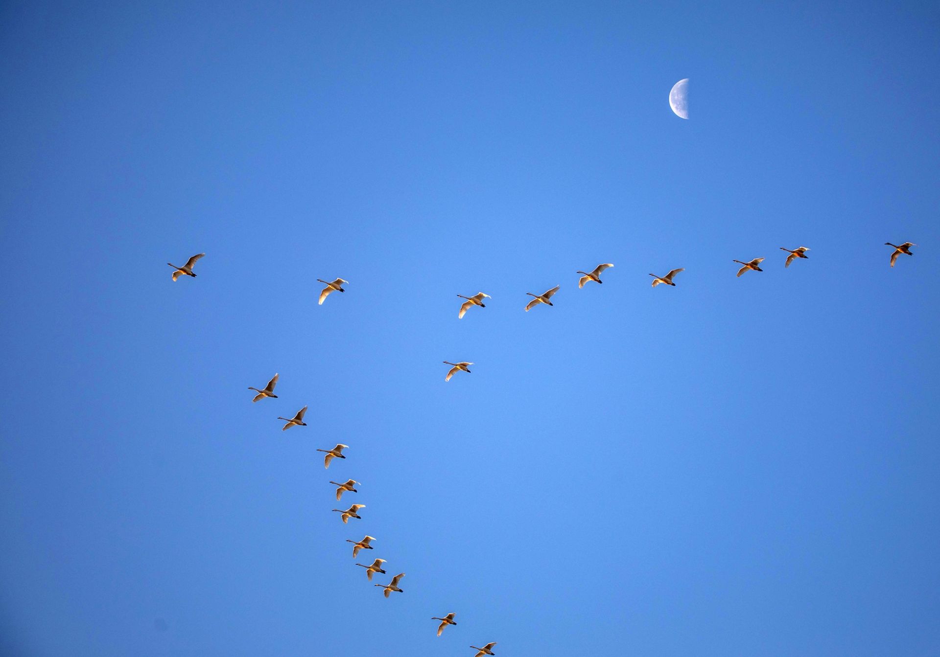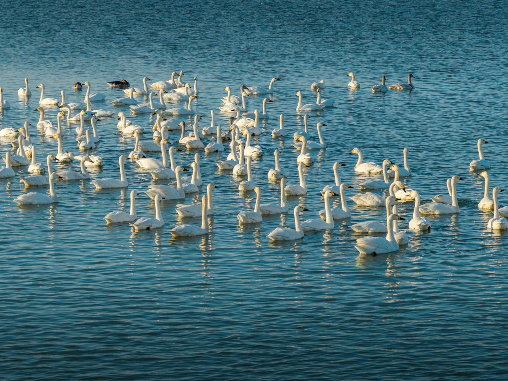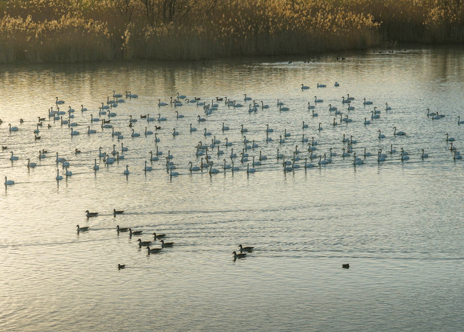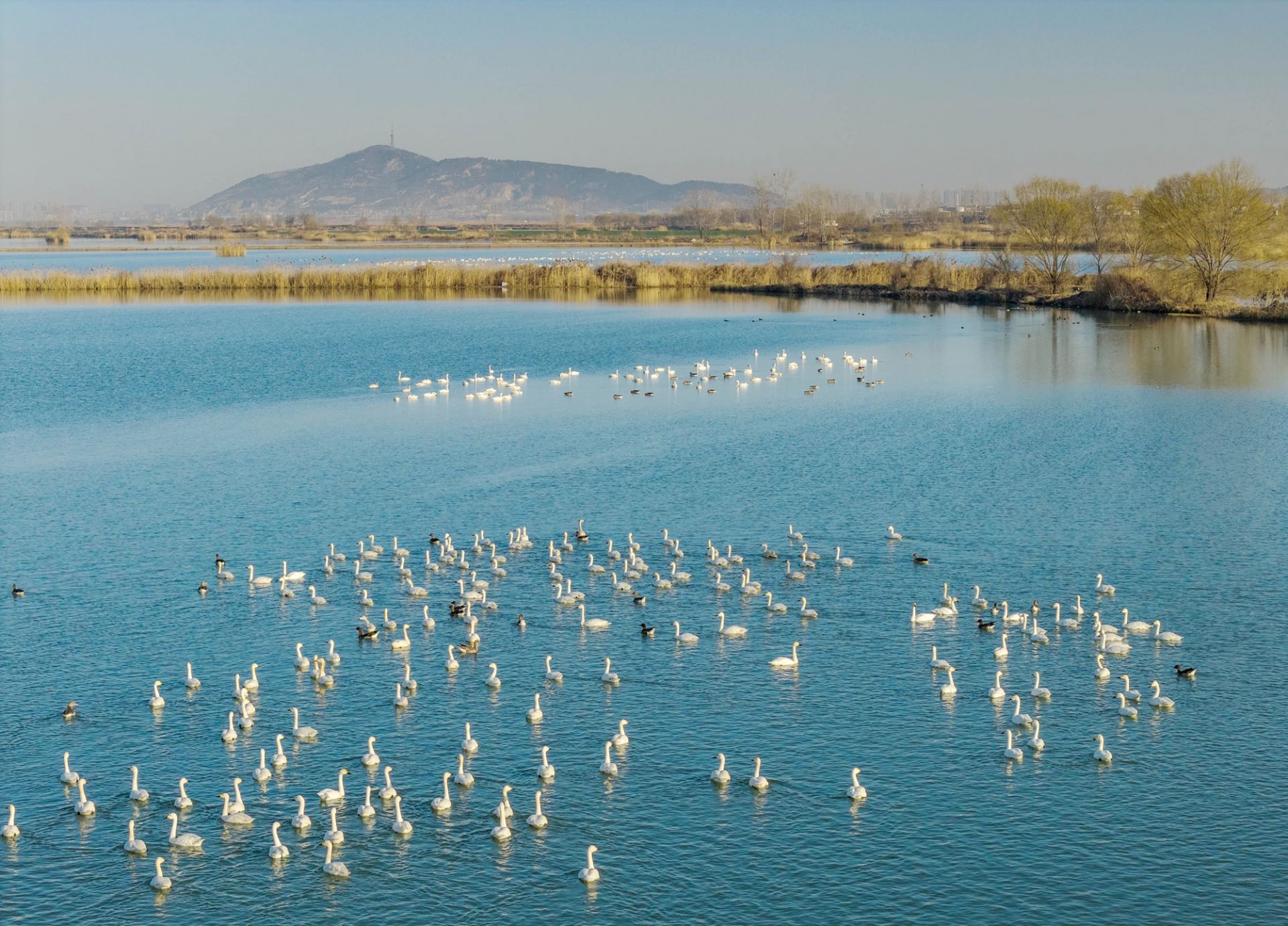 进入深冬,安徽省蚌埠市怀远县淮河大河湾湿地,成群结队的白天鹅从遥远的西伯利亚飞越数千公里,如期抵达这片熟悉的越冬乐园。洁白的身影如云朵般飘落水面,让静谧的湿地变成了生机盎然的“天鹅湖”。