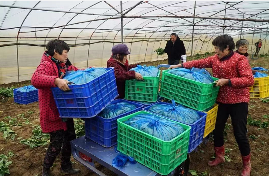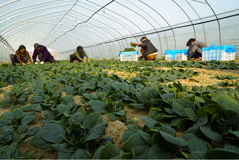 寒冬时节,五河县朱顶镇种植的千亩菠菜迎来采收期。大棚内农户们正抓紧采收、打包,并及时发往上海、南京等地,让皖北鲜菜走上长三角市民的年货餐桌。