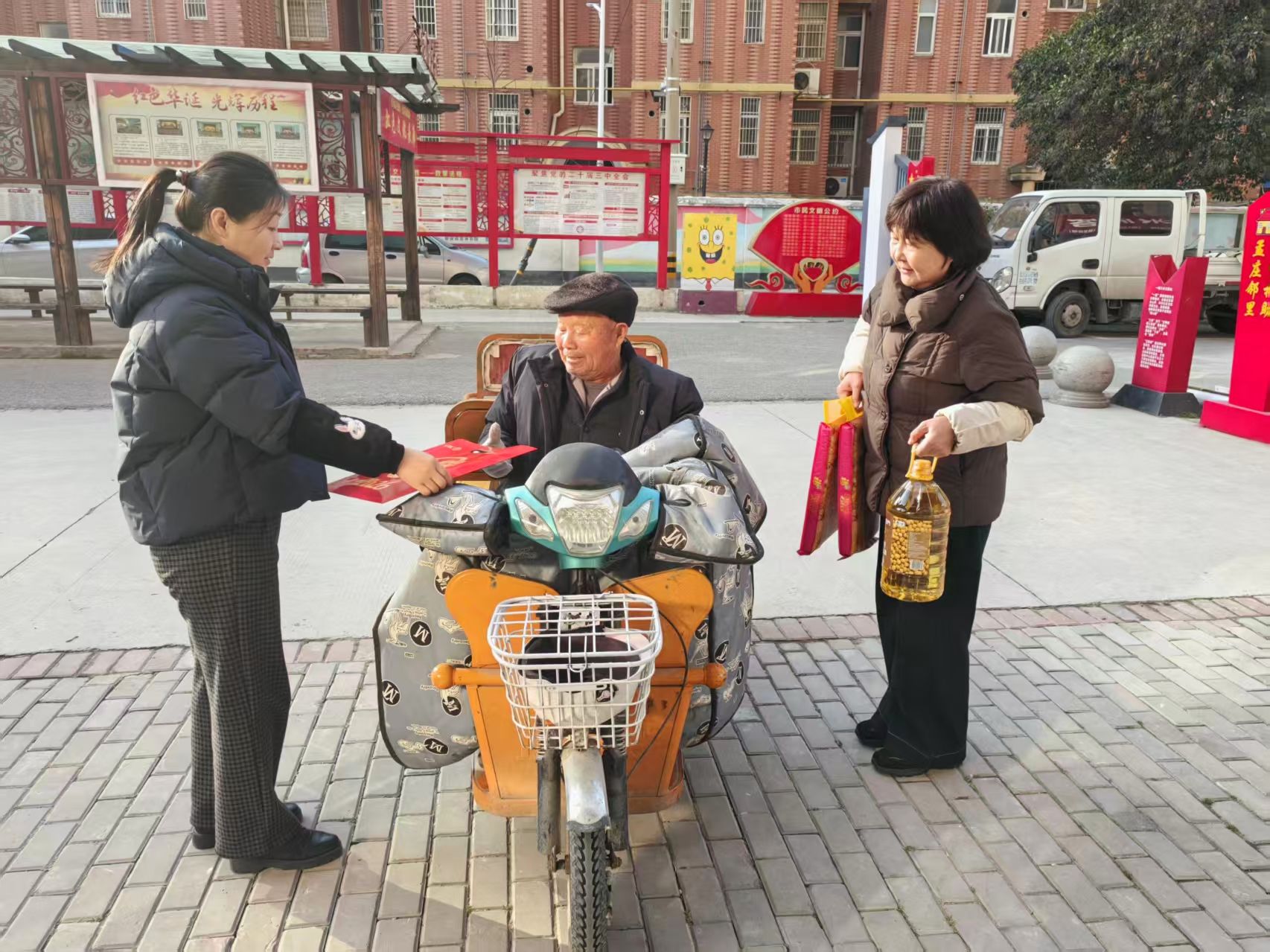 此外,社区节日慰问活动温情暖心。工作人员与志愿者带着慰问品,走访辖区老人、困难家庭,促膝长谈、嘘寒问暖,送上新春祝福,以实际行动传递社区大家庭的温暖。