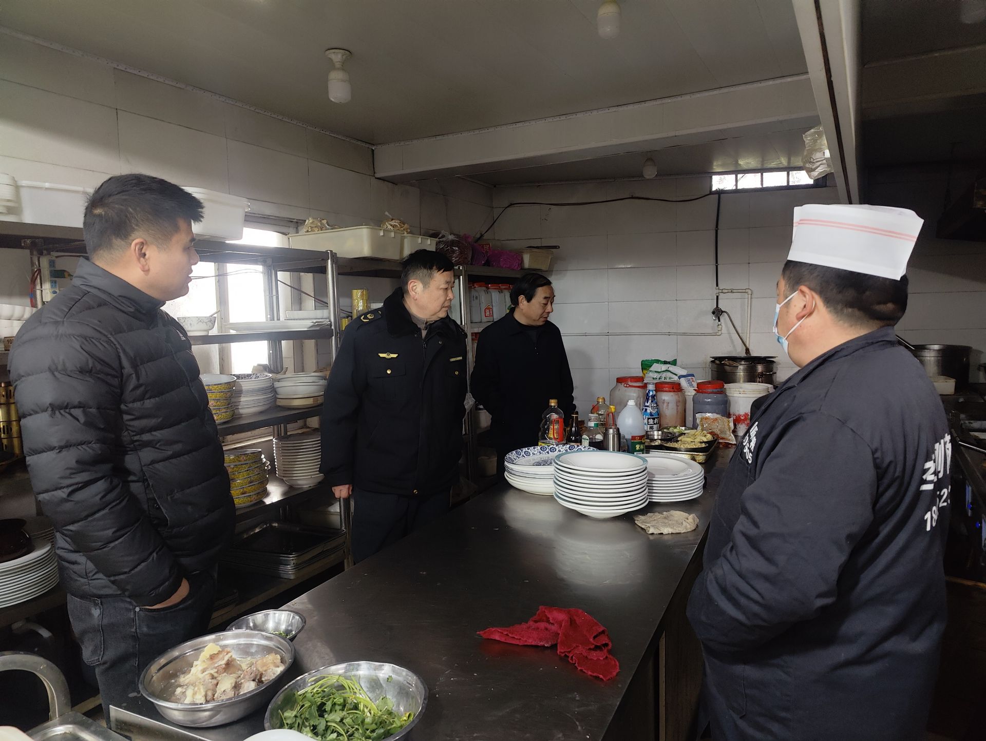 本次联合检查紧扣节日消费特点,以承接宴席包桌、亲友聚餐的餐饮单位为重点检查对象,围绕证照公示、从业人员健康管理、食材进货查验、后厨卫生、餐饮具清洗消毒及燃气使用等方面,逐项开展核查。执法人员现场查阅进货台账,核对肉类检疫证明及食品保质期,深入排查食材存储、凉菜加工等关键环节的风险隐患,督促经营者切实履行主体责任,严格把好原料采购、加工操作、餐具消毒“三道关口”,严防过期、变质及来源不明食品流入餐桌。