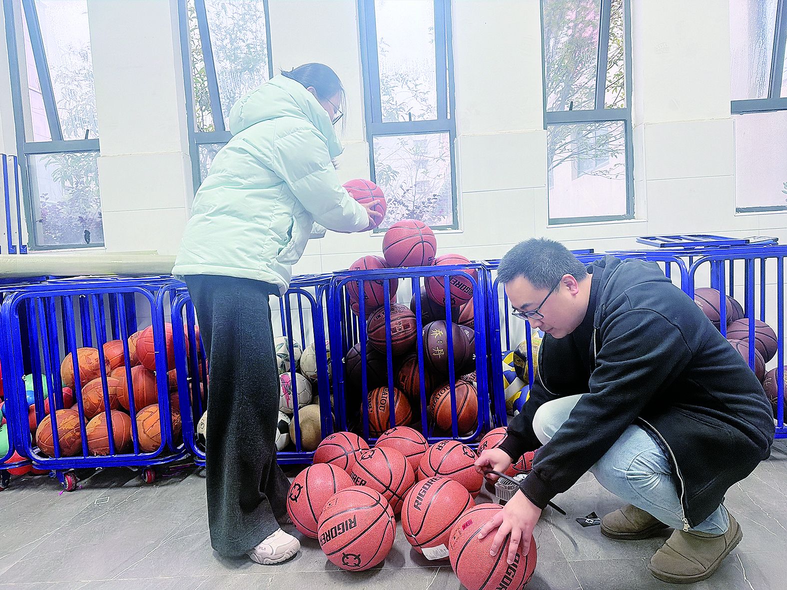 操场边,篮球、排球已经充好了气,静待少年挥洒汗水,鼓胀着重逢的期待。此外,各校教学设备检修,实验室仪器、多媒体系统等调试工作已有序开展。相关人员高效核对、打包新教材,确保开学首日学生们领到新书。