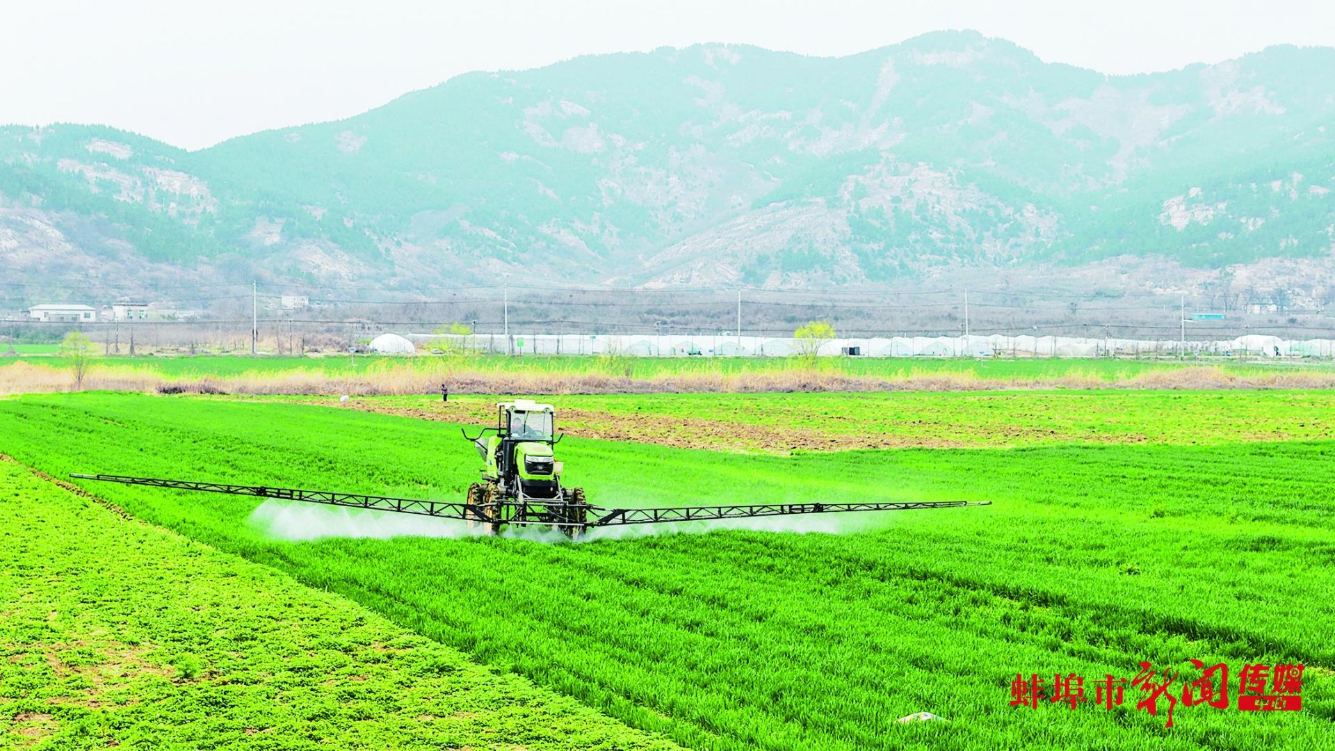 日前,涂山脚下,农民驾驶自走式高杆喷雾机对田间小麦进行喷药作业。当前我市各县区正抢抓农时,运用农业机械开展田间管理,为丰产丰收打下坚实基础。(蚌埠市新闻传媒中心记者 刘晨 摄)