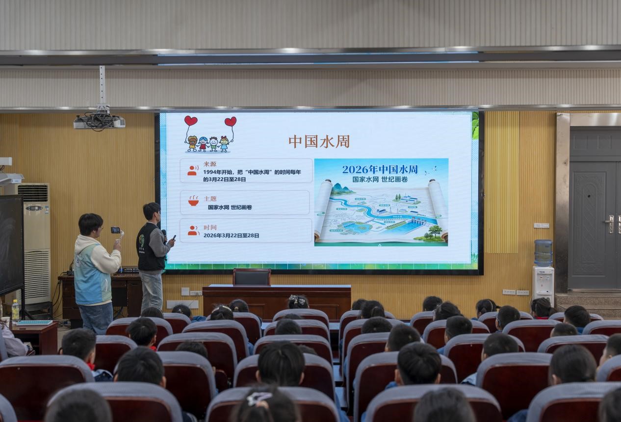 活动首站走进凤一小,志愿者化身专业“科普讲解员”,为孩子们带来一堂趣味十足的节水启蒙课。志愿者们结合生活实例,用浅显易懂的童言童语,细致讲解世界水日的由来、全球水资源现状、日常节水小妙招等内容,把抽象的水资源保护知识转化为看得见、学得来的生活习惯。在水利工程板块,志愿者以都江堰、京杭大运河等古代工程展现中华治水智慧,以南水北调、白鹤滩水电站等现代工程阐释国家水网建设的重要作用,让孩子们直观认识水利事业与民生福祉的紧密联系。课堂结尾,全体同学在志愿者带领下齐声宣读节水口号,铿锵誓言传递出爱水护水的坚定决心。