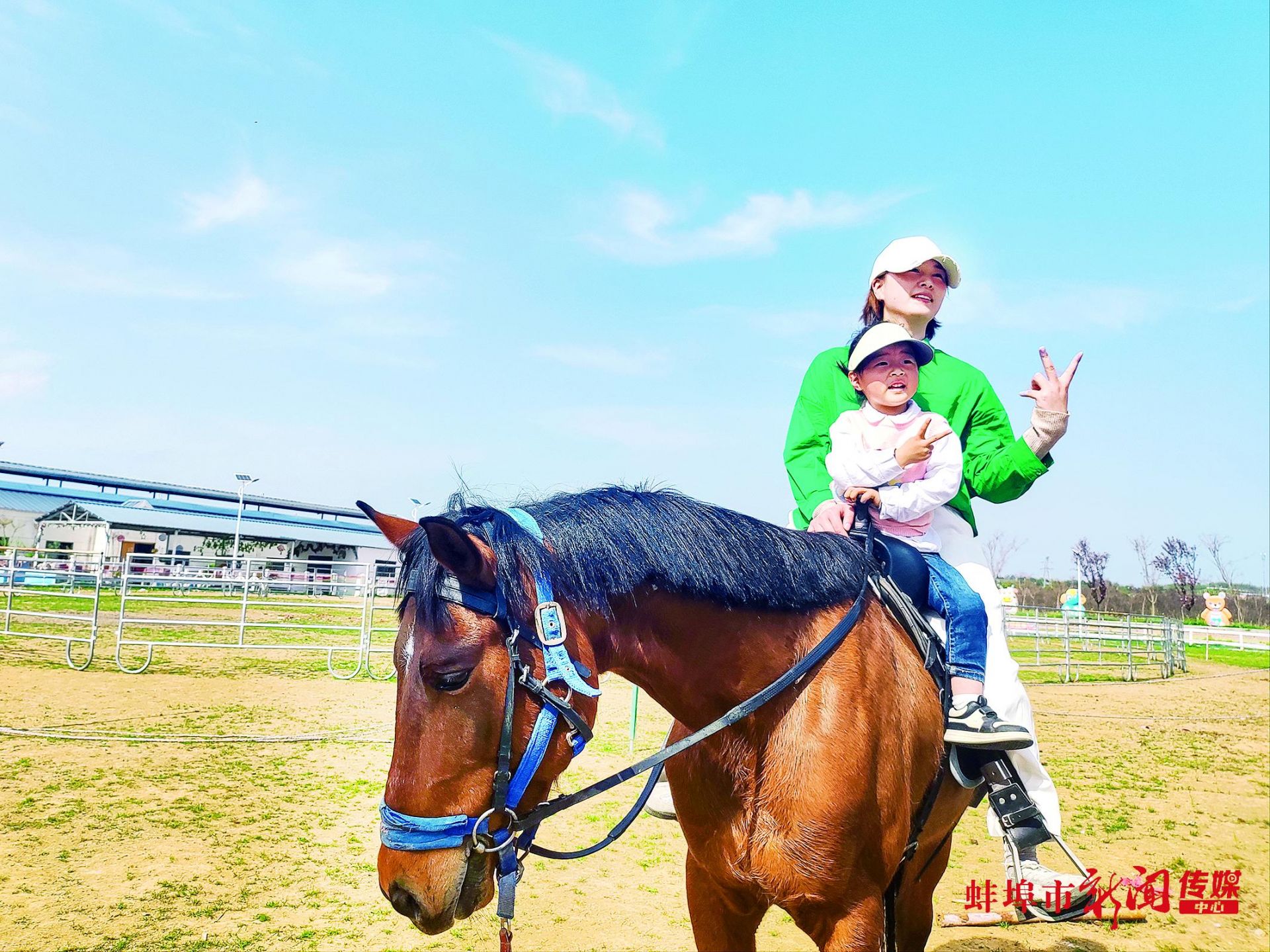 最吸睛的莫过于汗血宝马基地。一匹名为“流星”的改良品种汗血宝马,毛色棕红发亮,成为全场焦点。它的训练师、中国马术协会教练黄建宏介绍,“‘流星’主要用于耐力赛和障碍赛,若非假期难得一见。”不少孩子在家长陪同下,小心翼翼地抚摸马鬃,又兴奋地跨上马背,体验了一把“驰骋疆场”的感觉。刚带着孩子下马的游客张雨林满脸兴奋:“体验太棒了!这里空间开阔、项目丰富,孩子能尽情玩耍,大人也很有参与感。”六年级学生彭思宇是第一次来凤凰山,他刚从越野车上跳下来,脸蛋红扑扑的:“这里很好玩,空气很清新。还能跟爸爸妈妈一起烤肉串,在帐篷里玩游戏,感觉特别开心。”而全场气氛最热烈的环节,当属“抓鸡大赛”。只见游客们追着满场跑的土鸡,欢笑声与惊呼声此起彼伏。凤凰山亲子乐园副总经理刘磊介绍:“清明叠加春假,园区日均接待量约2万人次。北园主打花朝节,南园安排了抓鸡、抓猪、捞鱼大赛,还有非遗表演、马术表演等一系列活动,就是想让咱蚌埠市民和广大游客玩得尽兴、玩得开心。”