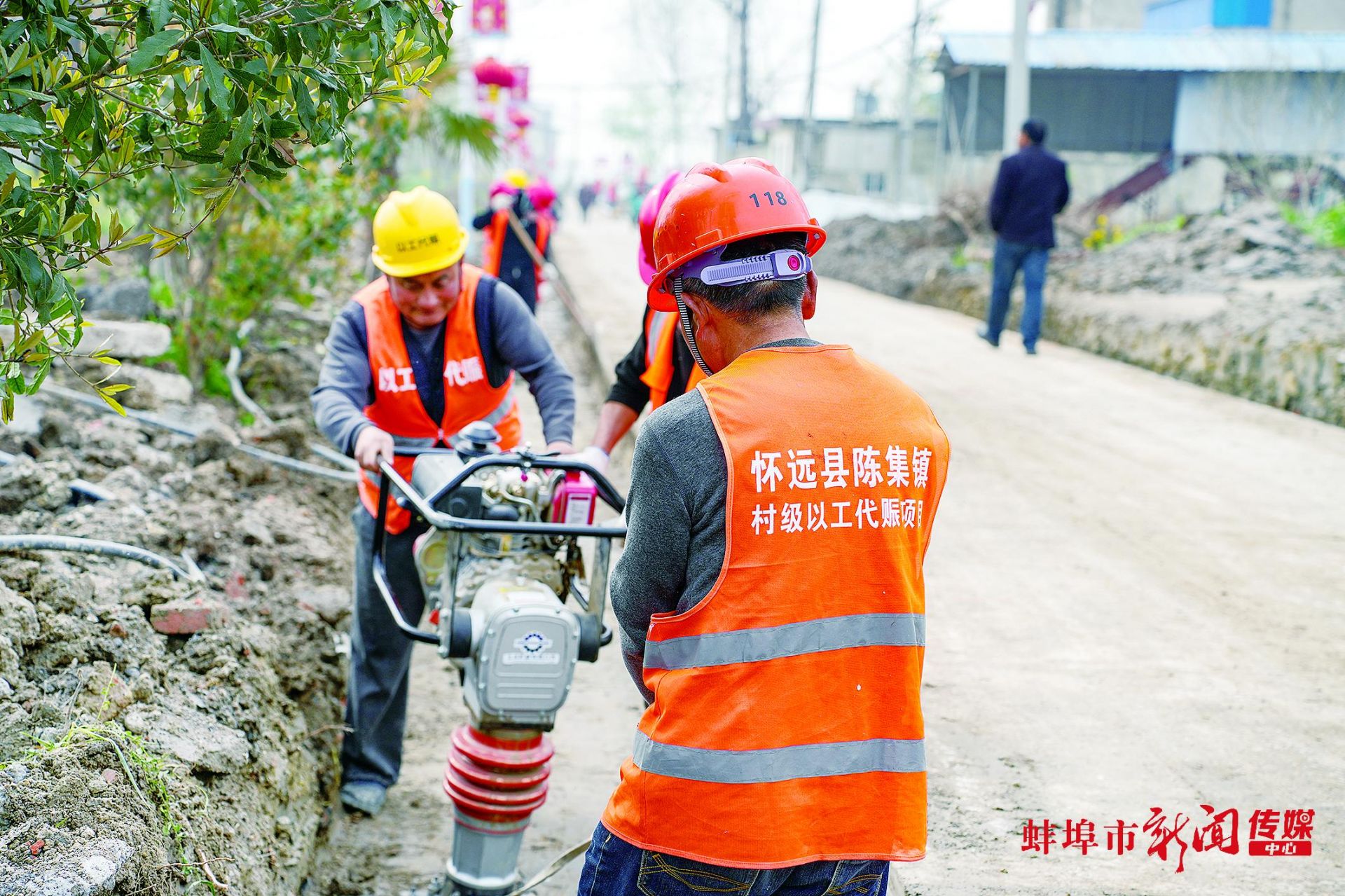 春日午后,怀远县陈集镇的南循环路上,一派繁忙景象。60多岁的年师傅弯腰挥动铁锹,将路边的基底细心找平。路边的桃花盛开,他拧开存放在树下的玻璃水杯,喝了一大口,又回到工友中间。