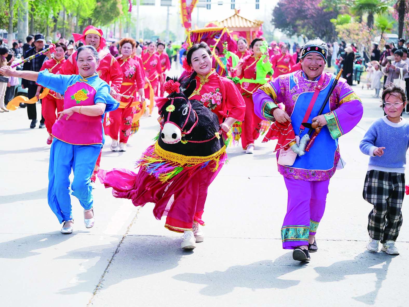 当地以庙会为平台,持续推动传统文化保护与传承,目前五河花挑舞、旱船、钱杆舞、舞龙舞狮等多个项目,已先后入选国家及省级非物质文化遗产保护名录,让古老民俗在新时代持续焕发生机。(李向前)