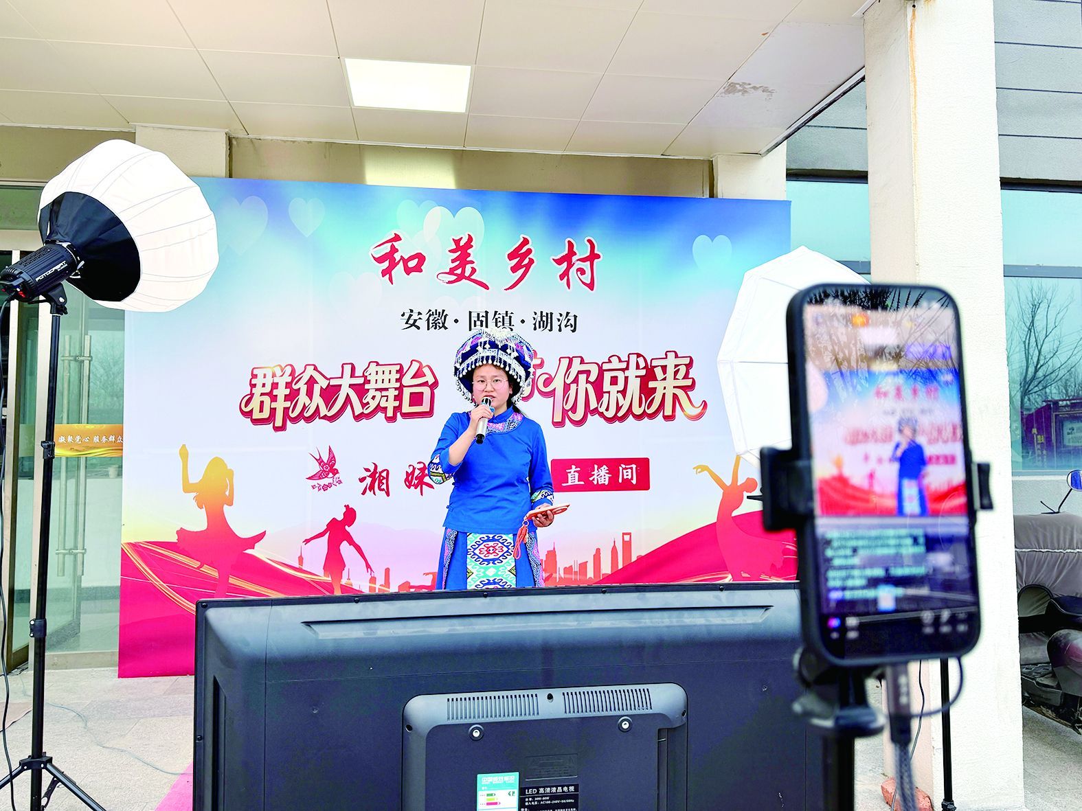 傍晚的湖沟镇中心村文化广场,夕阳余晖洒在热闹的人群中,村干部王友艳的户外直播准时开播。没有专业的演播厅,没有华丽的舞美布景,一套简易的直播设备、一个露天的群众舞台,就构成了中心村专属的“和美乡村直播间”。村民们轮番登台唱歌,乡土的歌声、欢快的笑声通过网络,传到千里之外,让在外务工的游子也能实时感受家乡的烟火气。