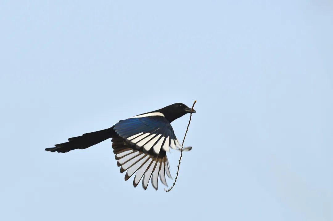 喜鹊衔着枯枝叶
