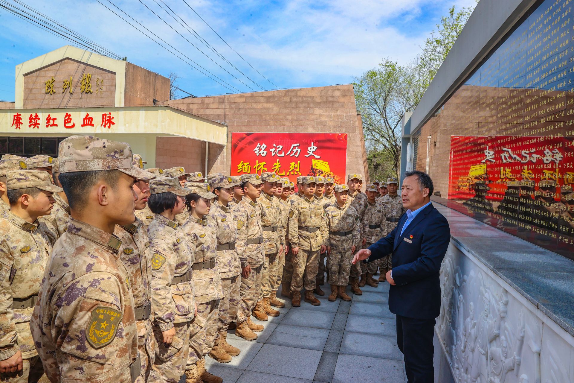 铭记历史,缅怀先烈。清明节前夕,第71集团军“朱德警卫团”组织官兵到蚌埠市革命历史陈列馆,开展“追寻先烈足迹,矢志奋斗强军”清明祭英烈活动,通过参观陈列馆、诗歌朗诵、重温入党誓词等活动,引导官兵在继承先辈遗志、铸牢对党忠诚中不断激发强军斗志。