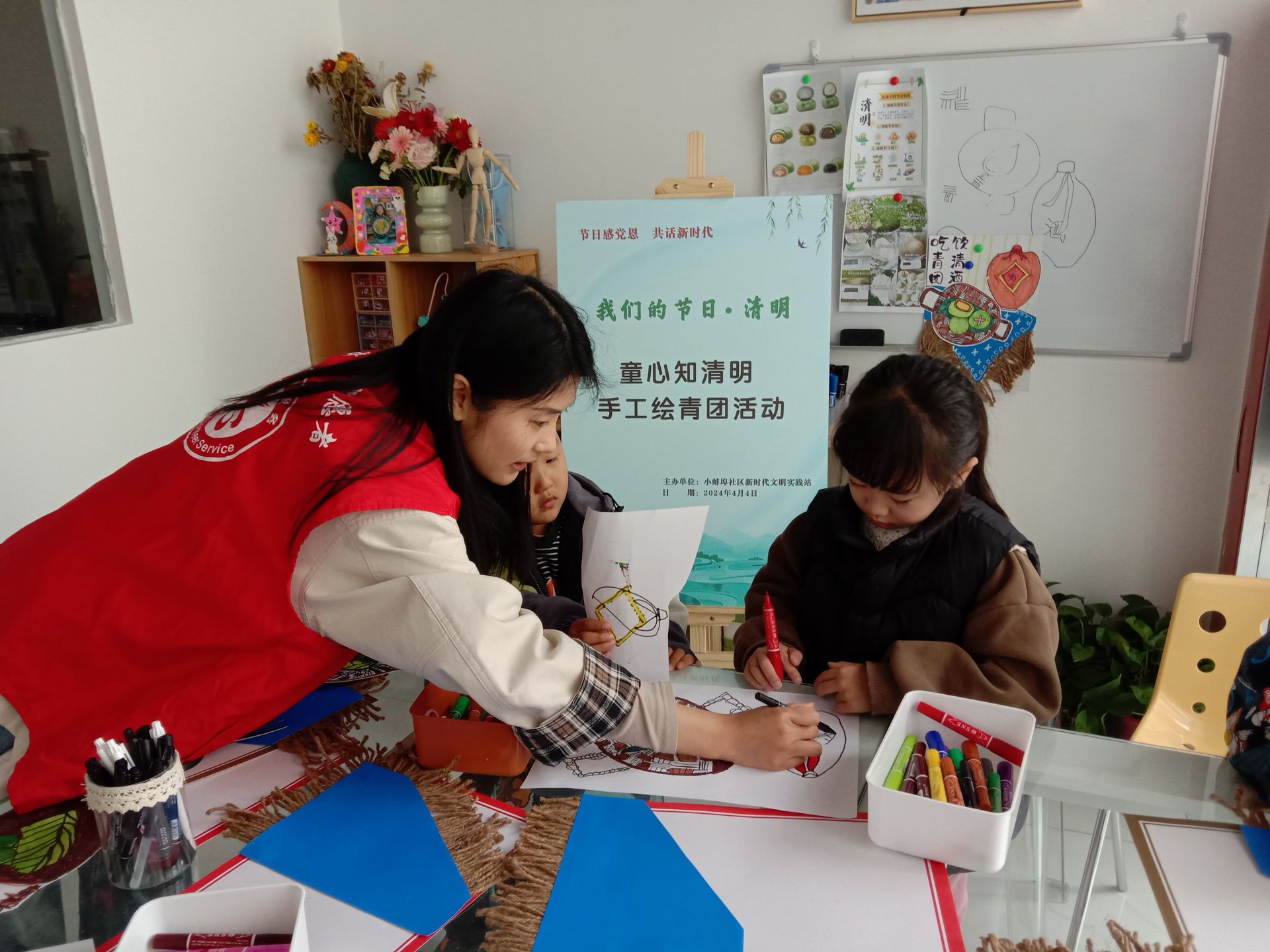 在清明节来临之际,为弘扬文明祭扫新观念,用实际行动践行绿色清明,2024年4月4日上午,小蚌埠社区新时代文明实践站联合周一艺术馆开展“童心知清明,手工绘青团”主题活动。