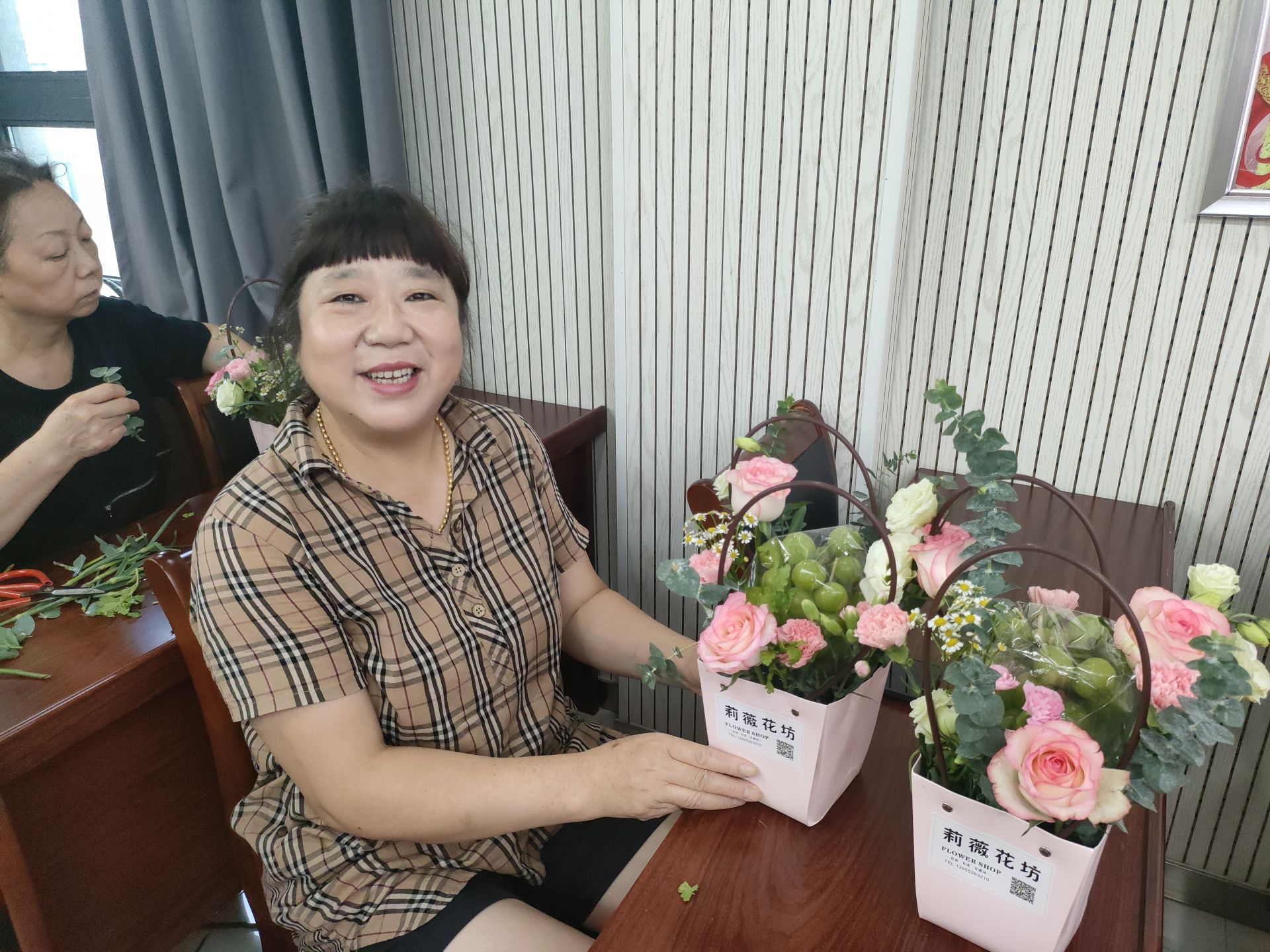 清新的花卉搭配,象征着不离不弃的陪伴,最后加入了甜美的阳光玫瑰葡萄,赋予花篮美好的寓意。活动中,花艺老师从花枝修剪、选择花材、插花器皿、造型搭配及如何养护逐一开始讲解,教大家制作鲜花水果花篮,这是一种鲜果和鲜花相结合的一种创新插花方式。跟随着老师的节奏,大家都满怀爱意用心尝试插花,从确定主花的位置、高度、颜色,到搭配相关的配花、枝叶,在一片芳香四溢的鲜花和甜美水果的芳香世界中,大家完成了一个个精美的花篮,看着自己的作品,大家都充满成就感和喜悦感。